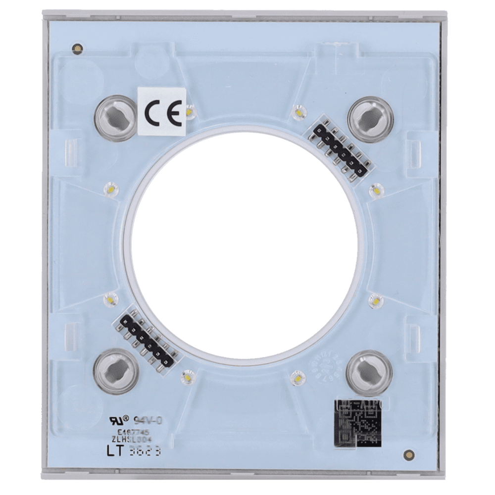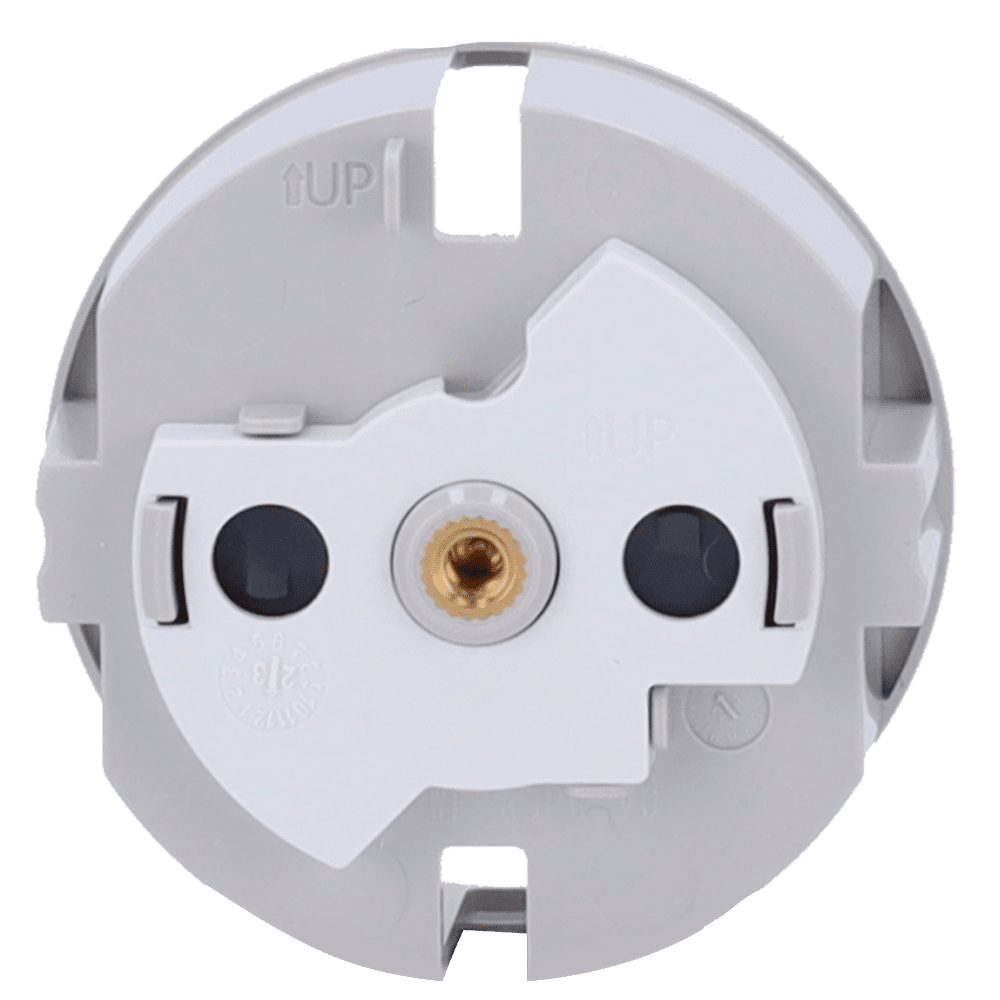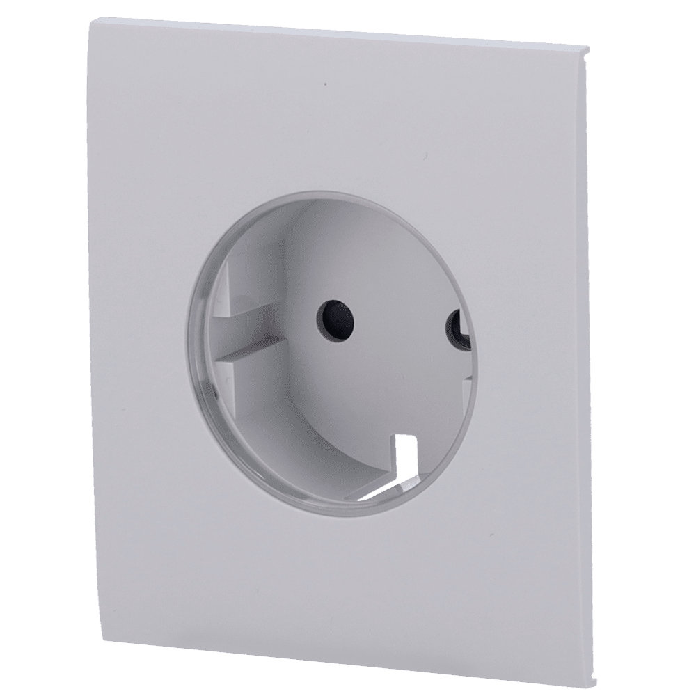 Cobertura central para ficha inteligente e tipo F – Compatível com AJ-OUTLETCORE-SMART – Indicador LED do estado da tomada e do consumo de energia – Botão tátil para controlo manual – Feedback LED – Cor de nevoeiro