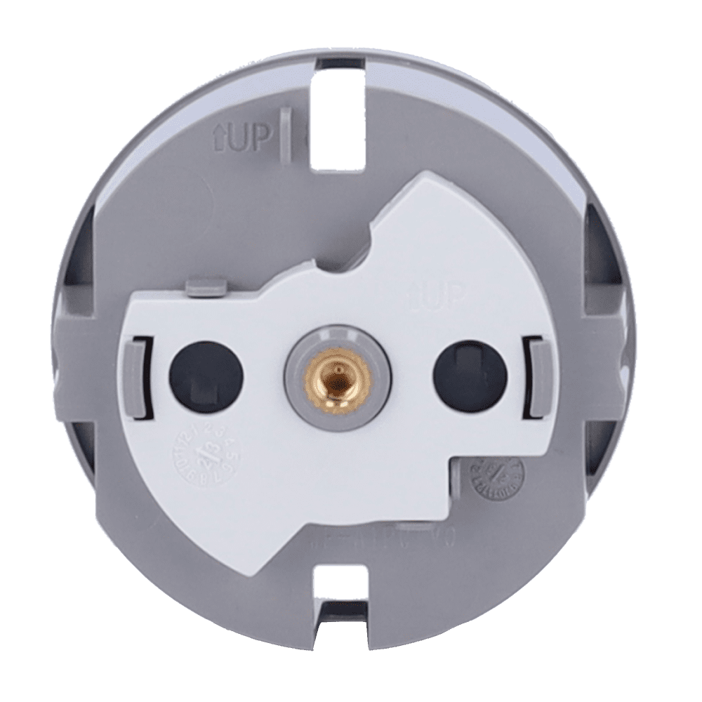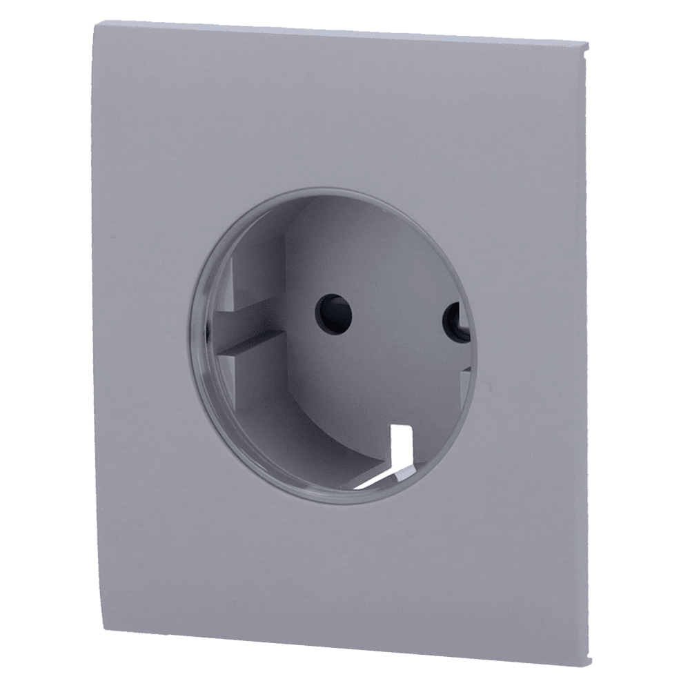 Cobertura central para ficha inteligente e tipo F – Compatível com AJ-OUTLETCORE-SMART – Indicador LED do estado da tomada e do consumo de energia – Botão tátil para controlo manual – Feedback LED – Cor cinza