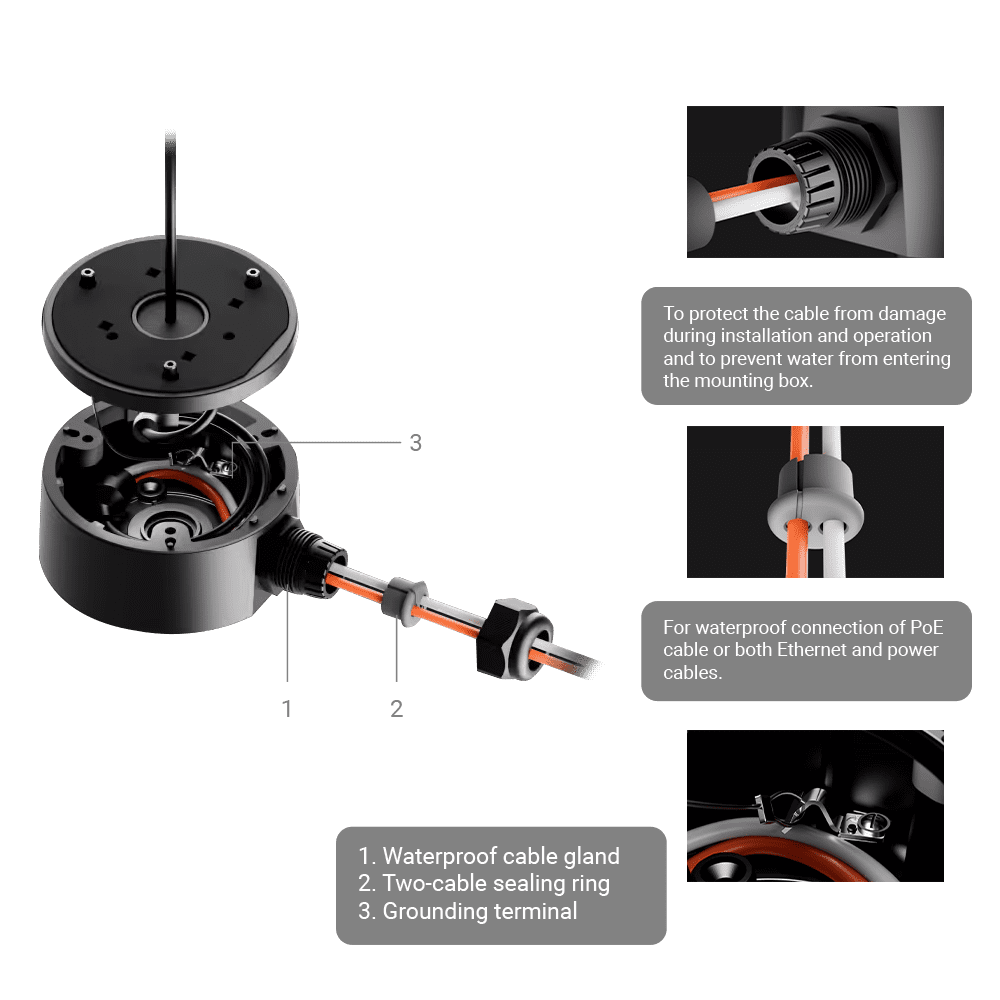 Caixa de conexões – Para câmaras Bullet, Dome e Turret Ajax – Apto para uso exterior – Instalação em tecto ou parede – Incluindo bucim – Cor branco