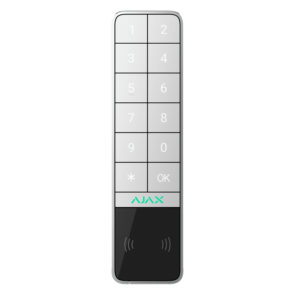 | Controlo de autenticação | – Códigos (teclado ou utilizador) – Leitor RFID para porta-chaves e cartões Ajax – Telemóvel via Bluetooth (BLE 4.2 ou superior) |