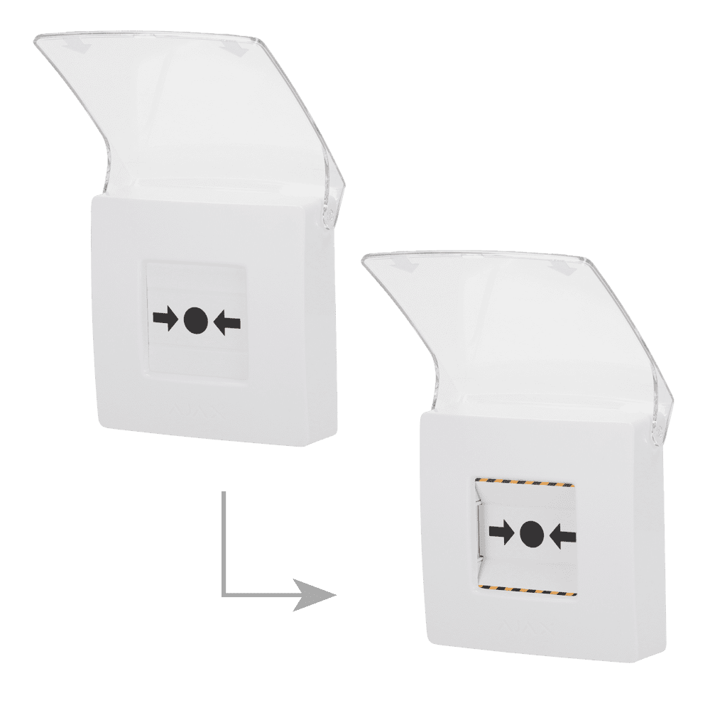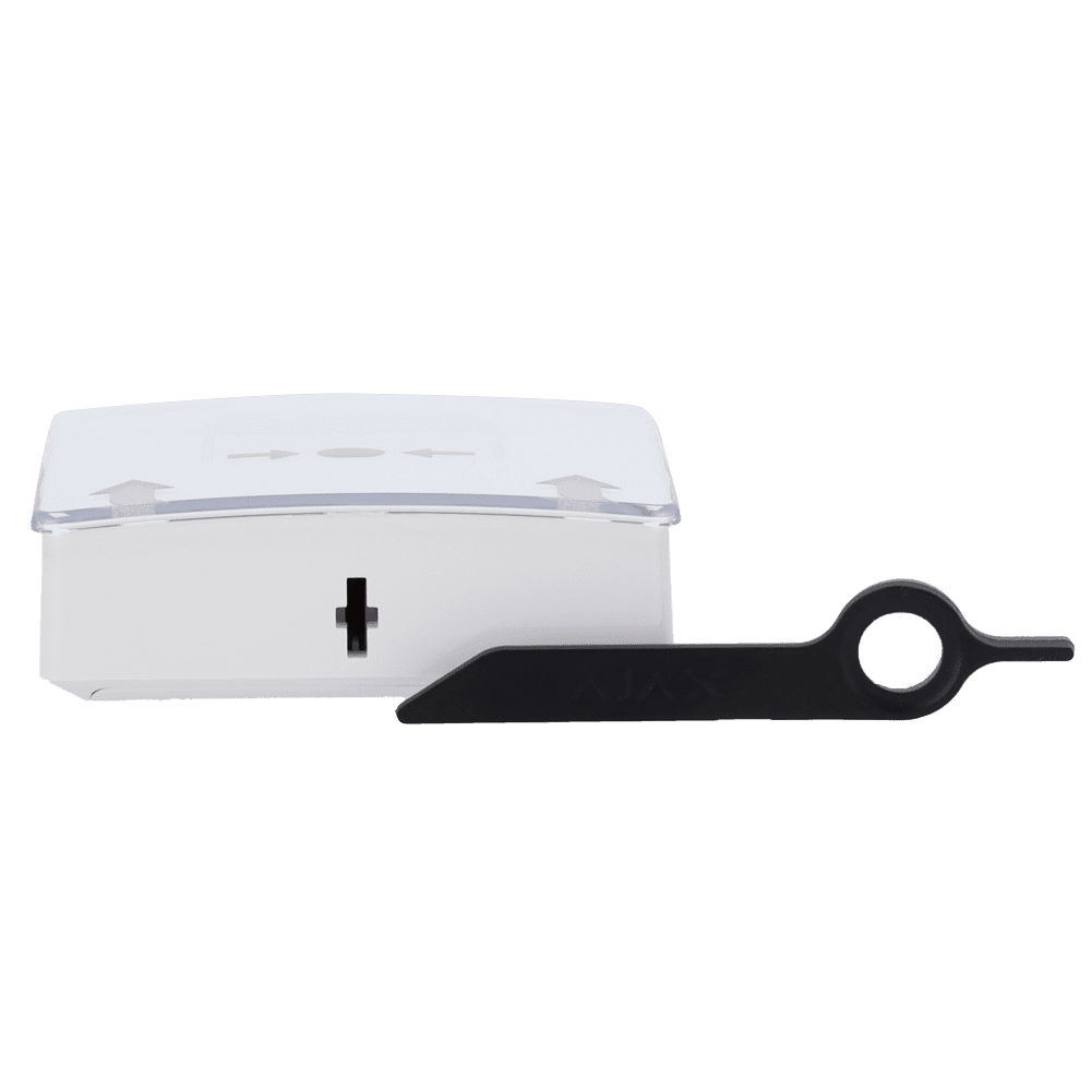 Botão de alarme de incêndio manual branco – Sem fios 868 MHz Jeweller – Botão de alarme de incêndio ou ativador de cenário – Compatível com a função de alarme interligado – Transmissão de alarme para o ARC (configurável) – Alimentação 2 pilhas CR123A