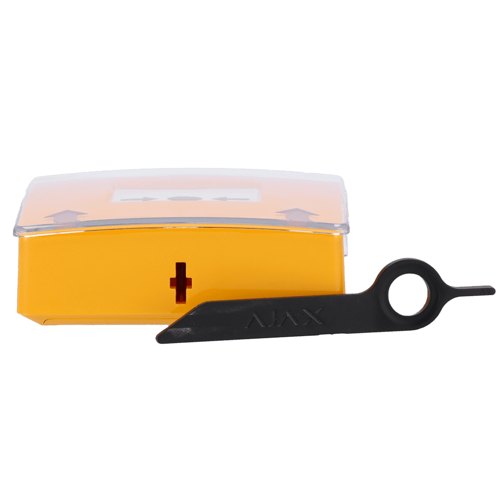 Botão amarelo de alarme manual de incêndio – Sem fios 868 MHz Jeweller – Botão de alarme de incêndio ou ativador de cenário – Compatível com a função de alarme interligado – Transmissão de alarme para o ARC (configurável) – Alimentação 2 pilhas CR123A