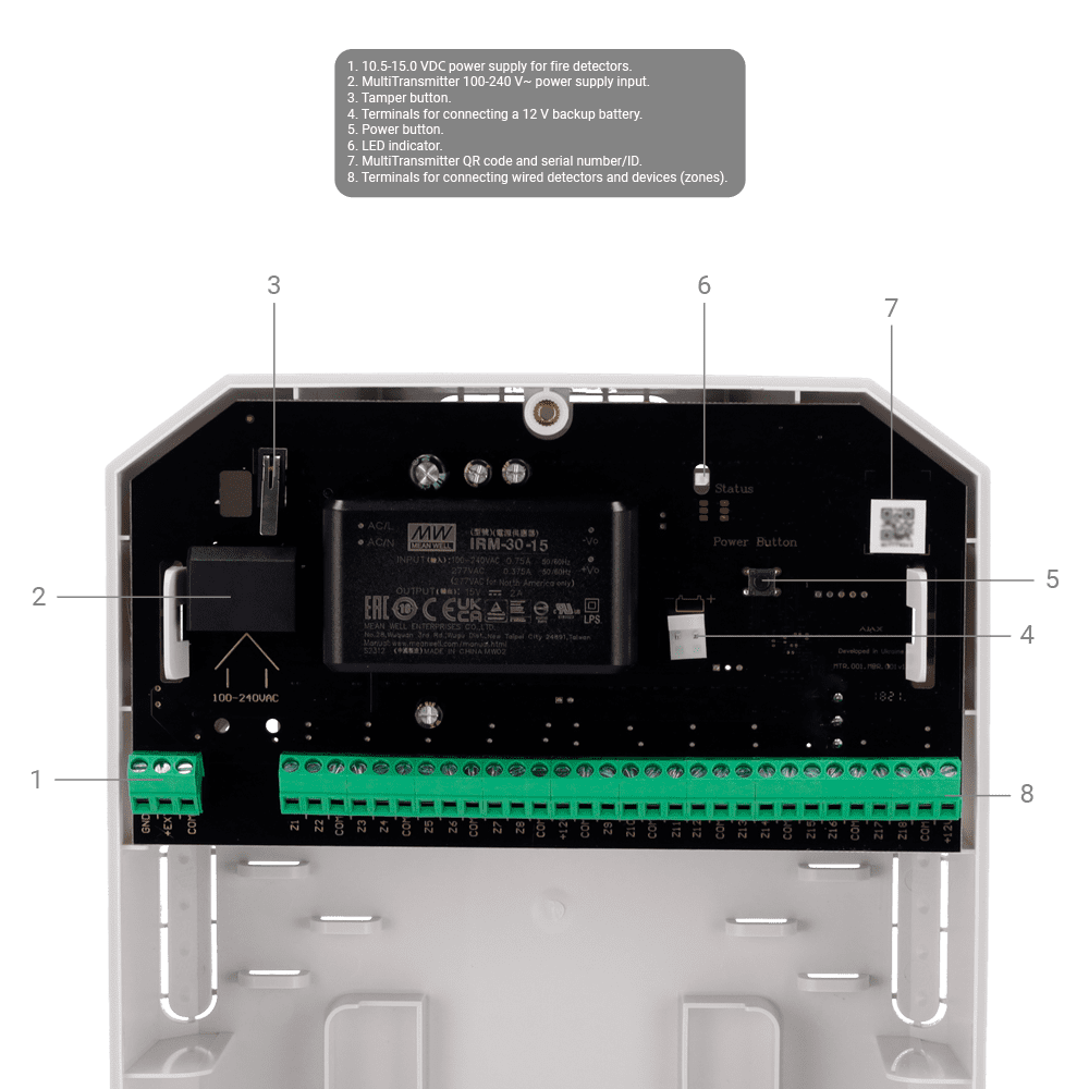 Expansor via rádio – Certificado NFA2P e Grau 2 – Expansor de zona com fios via rádio – Sem fios 868 MHz Jeweller – Até 18 Entradas de alarme com fio e tamper – Alarme configurável NC, NO, EOL, 2EOL, 3EOL – Dupla saida de alimentação 12V / 1A