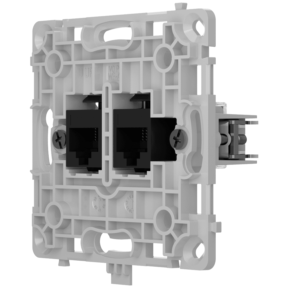 Tomada Ethernet com duas portas – Compatível com cabos CAT.6 e CAT.5e – Transmissão de dados a alta velocidade – Necessário tampa: SOLOCOVER-LAN / SIDECOVER-LAN – CENTERCOVER-LAN – Cor preto
