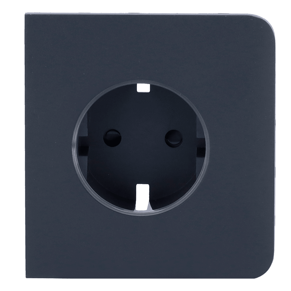 Cobertura lateral para ficha inteligente tipo F – Compatível com AJ-OUTLETCORE-SMART – Indicador LED do estado da tomada e do consumo de energia – Botão tátil para controlo manual – Feedback LED – Cor de grafite