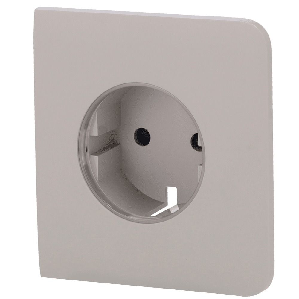 Cobertura lateral para ficha inteligente tipo F – Compatível com AJ-OUTLETCORE-SMART – Indicador LED do estado da tomada e do consumo de energia – Botão tátil para controlo manual – Feedback LED – Cor de azeitona