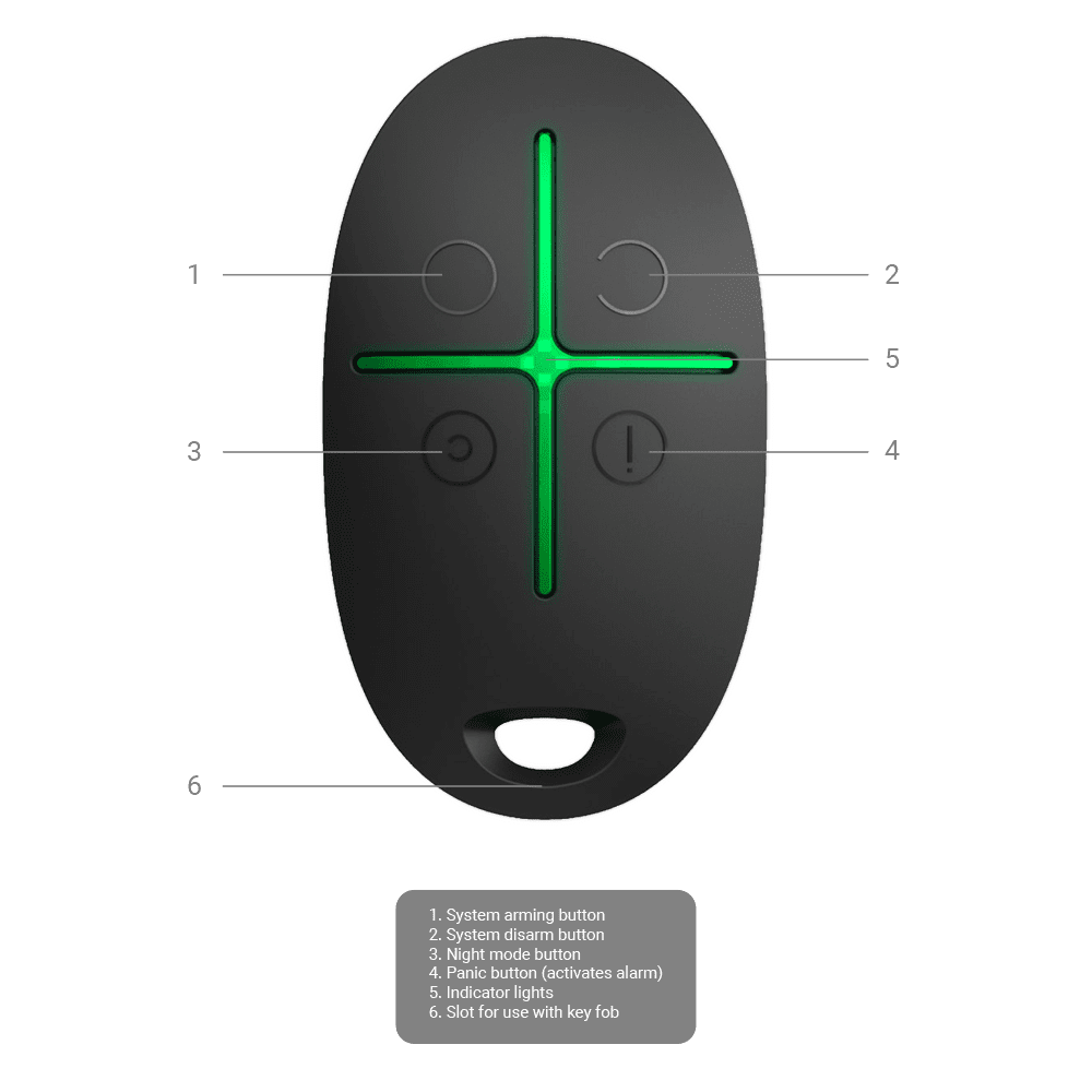 Mando a distancia – Grau 2 – Sem fios 868 MHz Jeweller – Armado, desarmado, parcial e pânico – Bidireccional – Alimentação 1 pilha CR2032 3.0 V