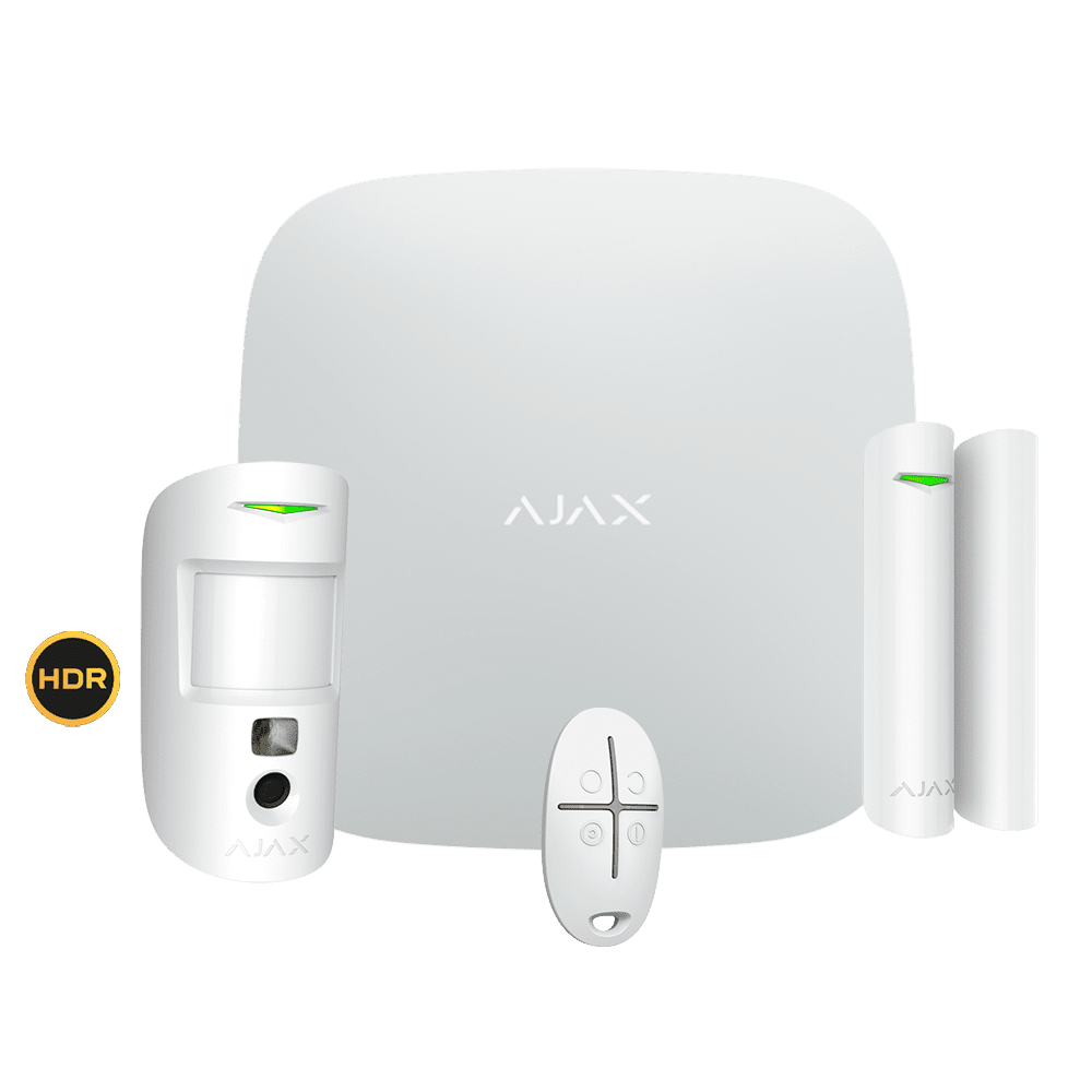 Kit de alarme profissional – Certificado Grau 2 – Comunicação Ethernet / Wi-Fi / dual SIM 4G – Sem fios 868 MHz Jeweller e Wings – Ajax HUB 2 Plus, 1 PIRCAM HDR – 1 Contacto magnético e 1 controlo