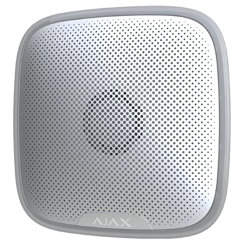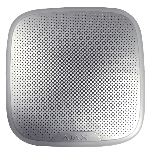 Sirene para exterior – Certificado grau 2 – Sem fios 868 MHz Jeweller – Pressão sonora máxima 113 dB – LED sinalização – Alimentação 12 VDC/ 4 pilhas CR123A 3.0 V