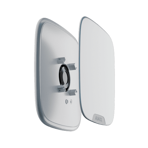 Sirene externa com tampa personalizável – Sem fios 868 MHz Jeweller – Pressão sonora máxima 113 dB – LED sinalização – Alimentação 12 VDC / 4 pilhas CR123A 3.0 V – Não inclui cobertas 10XAJ-BRANDPLATES-W