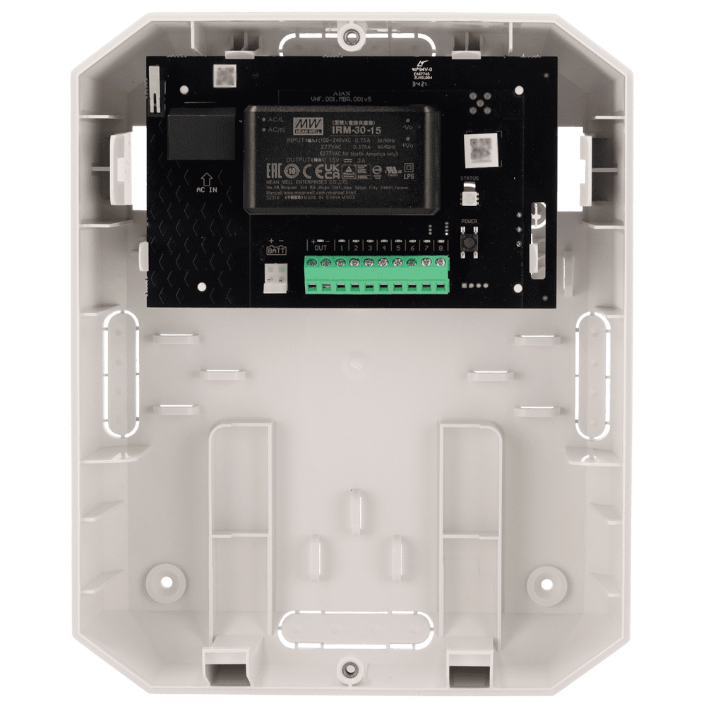 Módulo para ligação de transmissores VHF de terceiros – Sem fios 868 MHz Jeweller – 8 resultados potenciais – Saídas de potencial alto/baixo – Transmite por impulsos ou biestável – Suporta transmissor VHF com entradas de relé