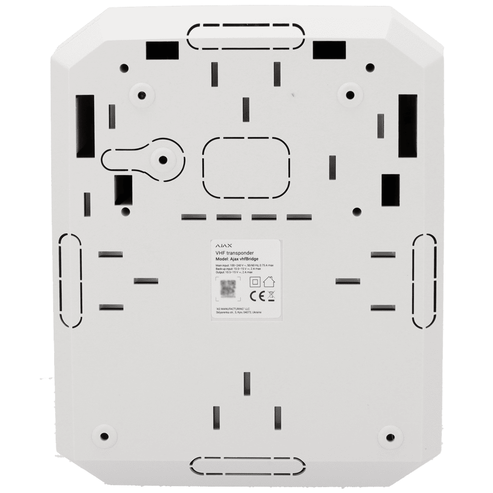 | Eventos apoiados | 1. Intrusão 2. Botão de pânico 3. Falhas de funcionamento 4. Sabotagem 5. Perda de alimentação eléctrica da VHFBRIDGE 6. Perda de alimentação eléctrica do HUB 7. Bateria do HUB descarregada 8. Perda de ligação entre o VHFBRIDGE e o HUB 9. Incêndio 10. Assistência médica 11. Qualquer alarme 12. Mudança dos modos de segurança 13. Bateria VHFBRIDGE descarregada 14. Intrusão confirmada 15. Alarme do botão de emergência confirmado |
