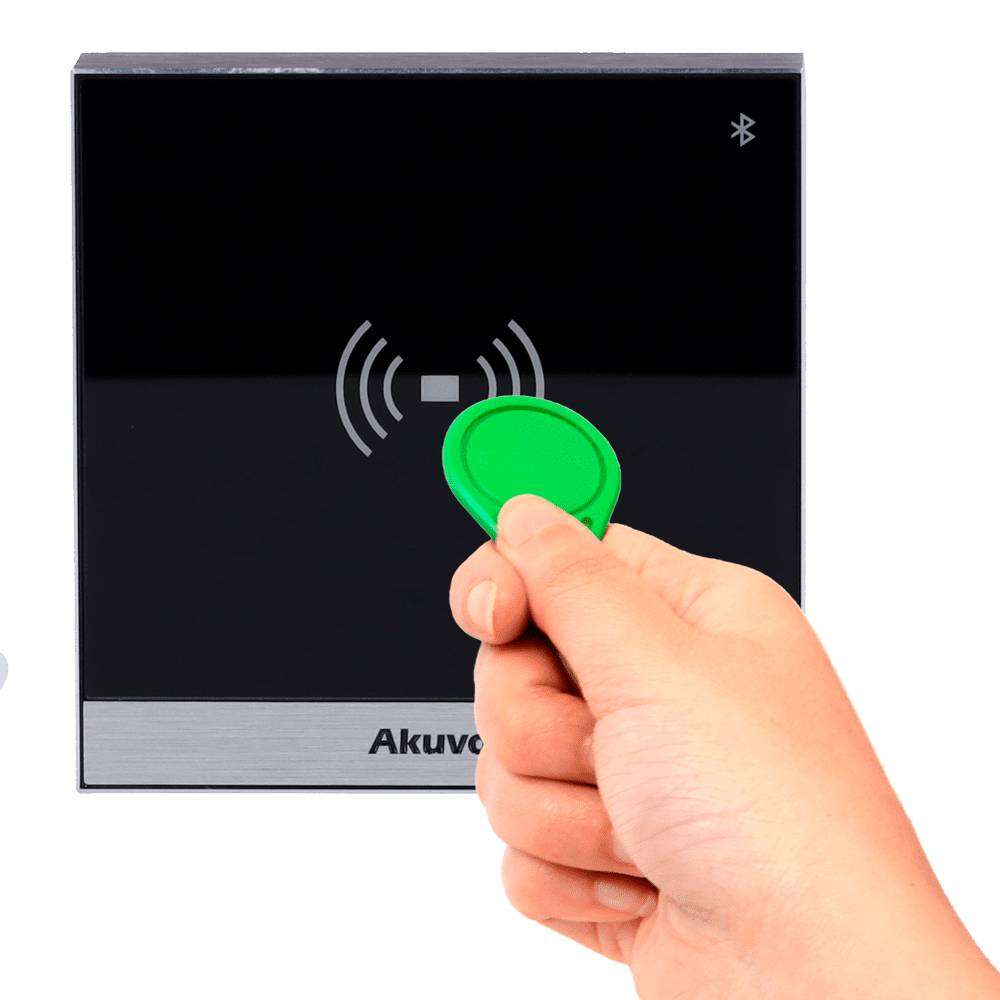 Controlo de acessoAbertura de porta com cartão RFID EM 125 kHz e MF 13.56 MHz, NFC e Bluetooth BLE, com registos