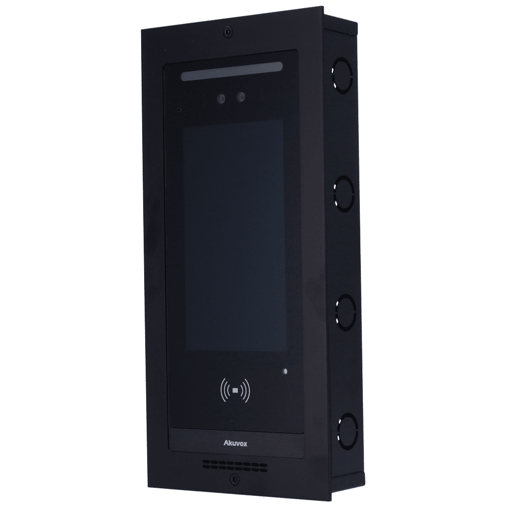 Painel frontal e caixa de registro encastrada – Específico para Akuvox AK-E18C. – Painel: 325 (Al) x 156 (Lg) x 22 (Fd) mm – Caixa: 315 (Al) x 143 (Lg) x 50 (Fd) mm – Fabricado em alumínio e aço galvanizado