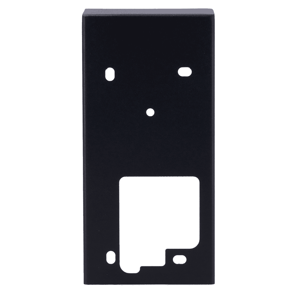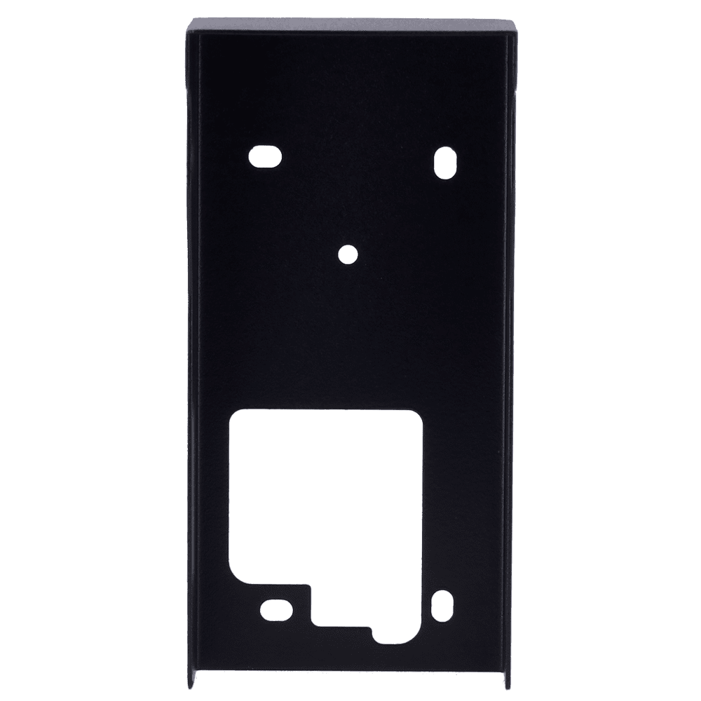Cobertura para videoporteiro – Específico para Akuvox AK-E12x. – Medidas: 153 (Al) x 74 (Lg) x 51 (Fd) mm – Fabricado em aço galvanizado – Viseira para chuva – Montagem na superfície