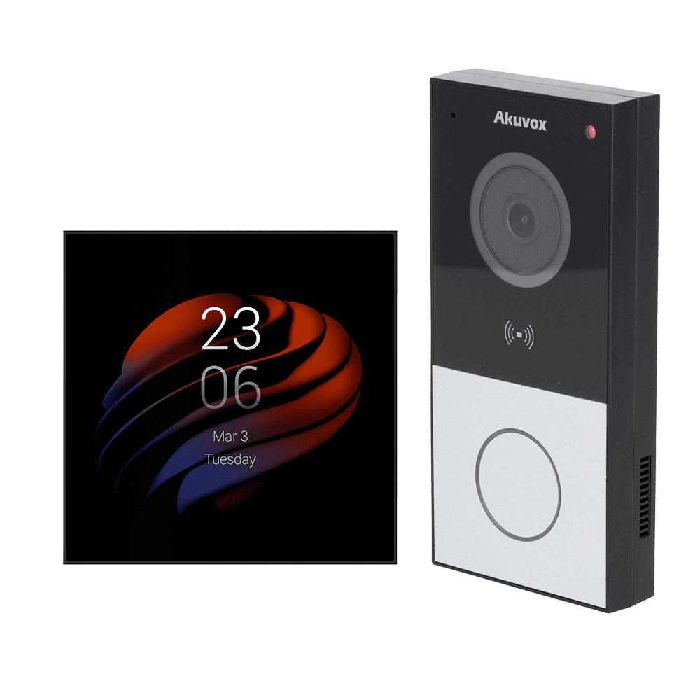 Kit de domótica e videoporteiro Android – IP & WiFi | Placa e monitor – Áudio bidirecional – Bluetooth e ZigBee – Leitor MF, NFC e BLE | padrão PoE – 1 saída de relé – Conexão através da cloud