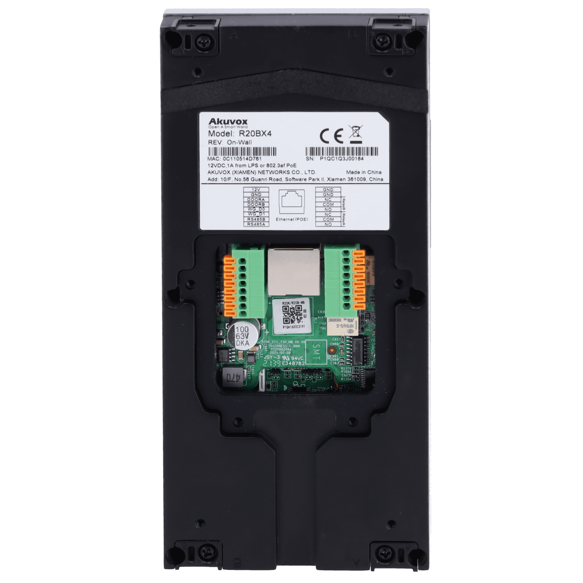 Videoporteiro IP em superficie – Câmara 2 Mpx | Áudio bidirecional – Abertura com cartão EM/MF e NFC 2 relés – 4 apartamentos | PoE, SIP padrão – Manutenção Cloud – Ligação via Cloud | Saída 12V
