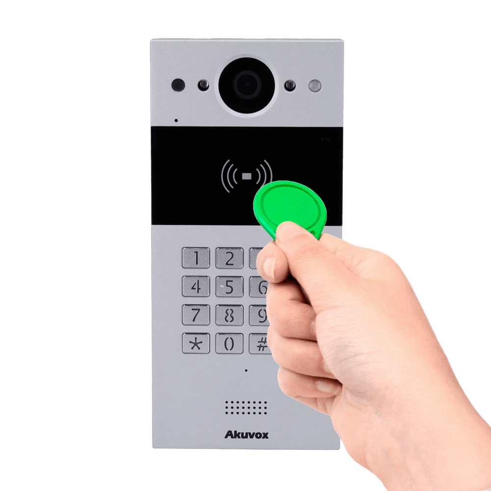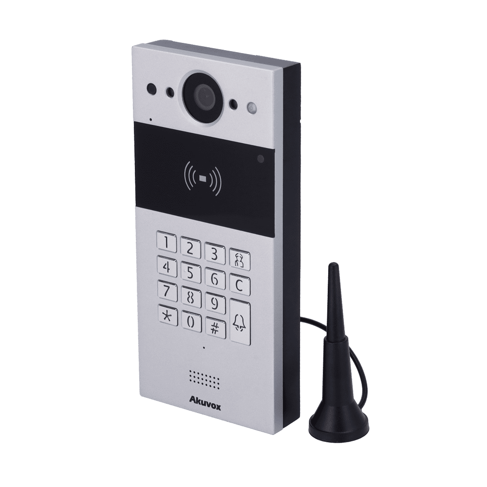 Videoporteiro IP em superficie – Câmara 2 Mpx | Áudio bidirecional – Abertura com cartão EM/MF, NFC e PIN | 2 relés – Códigos temporários | PoE, LTE, SIP standard – Manutenção Cloud – Ligação via Cloud | Saída 12V