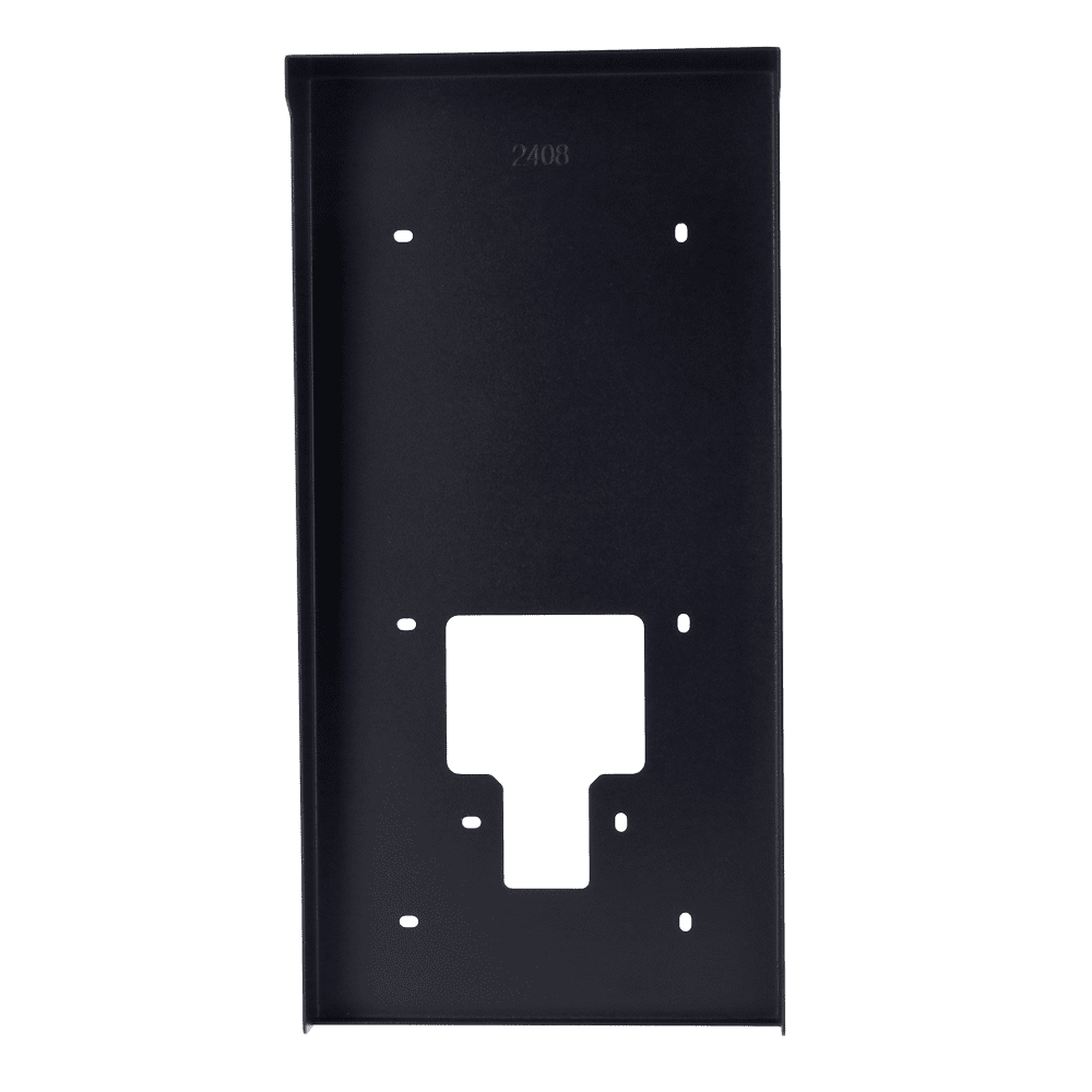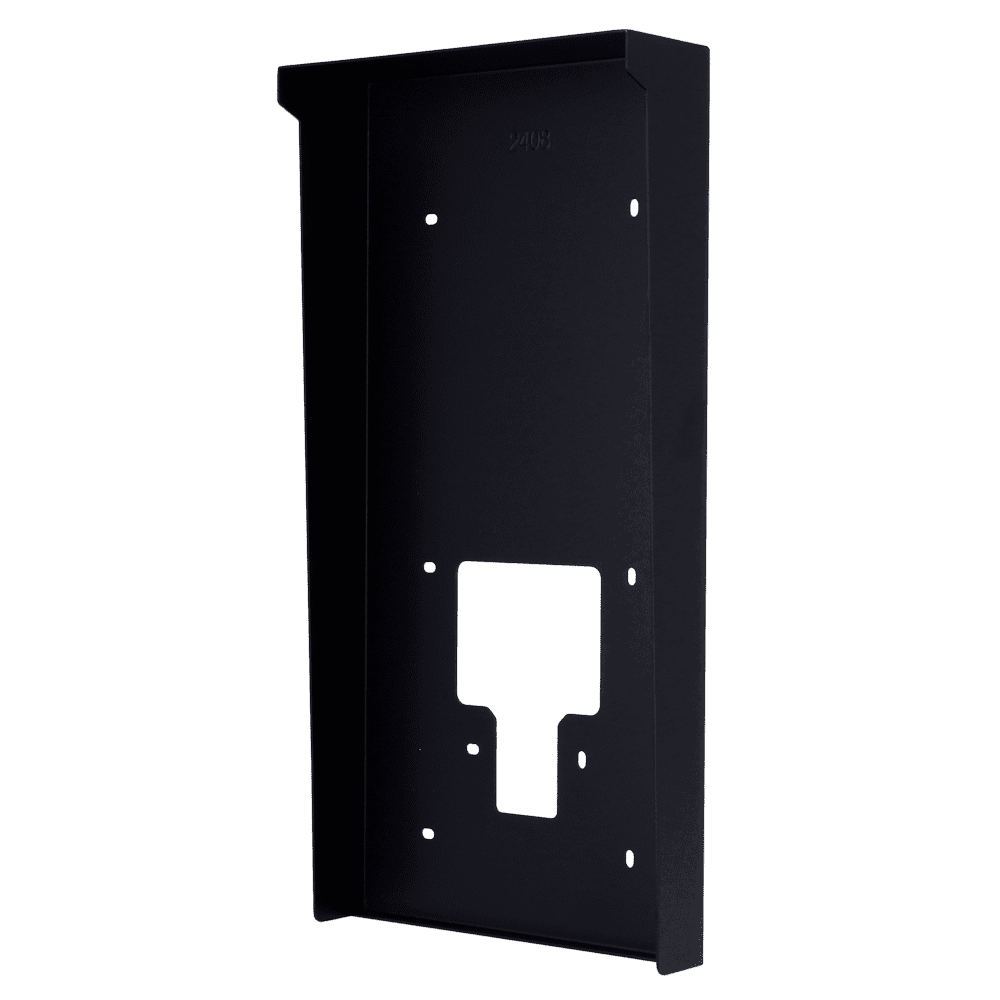 Cobertura para videoporteiro – Específico para Akuvox AK-S539. – Medidas: 380 (Al) x 188 (Lg) x 60 (Fd) mm – Fabricado em aço galvanizado – Viseira para chuva – Montagem na superfície