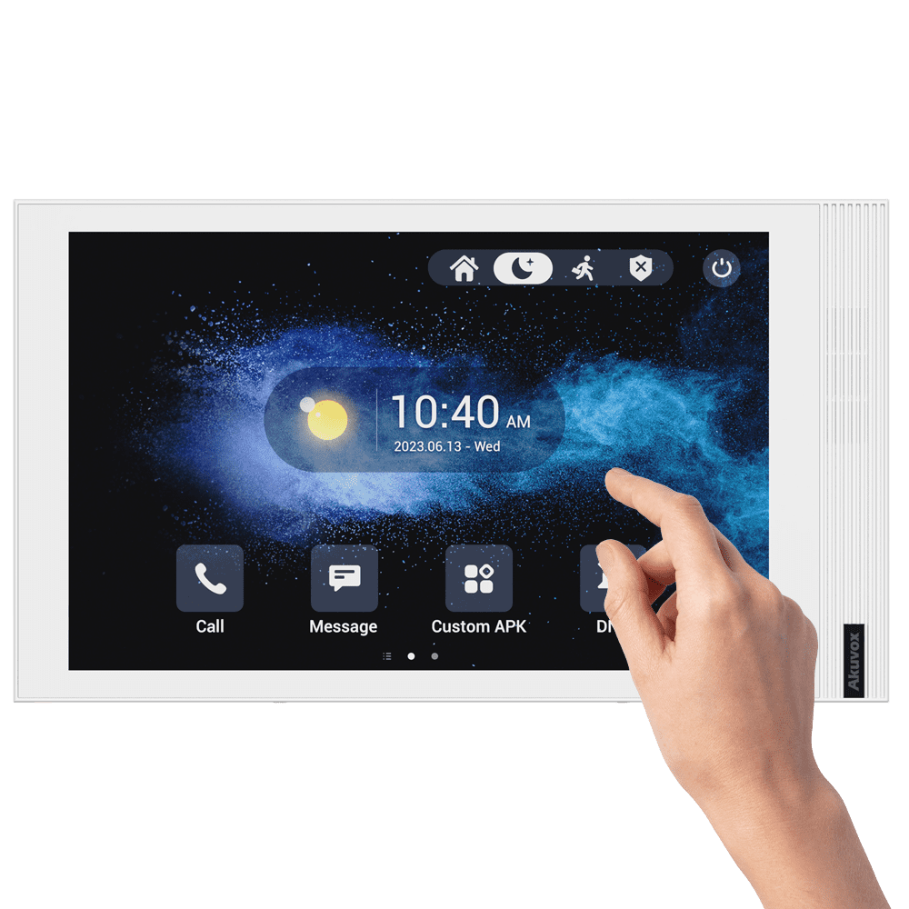 Monitor Android 12.0 para vídeo porteiro – Ecrã IPS de 8″ – Áudio bidireccional Crystal Clear | Easy UI – TCP/IP, PoE, WiFi, Bluetooth, SIP padrão – Manutenção na nuvem | APPs de terceiros – Ligação de monitor e placas via Cloud