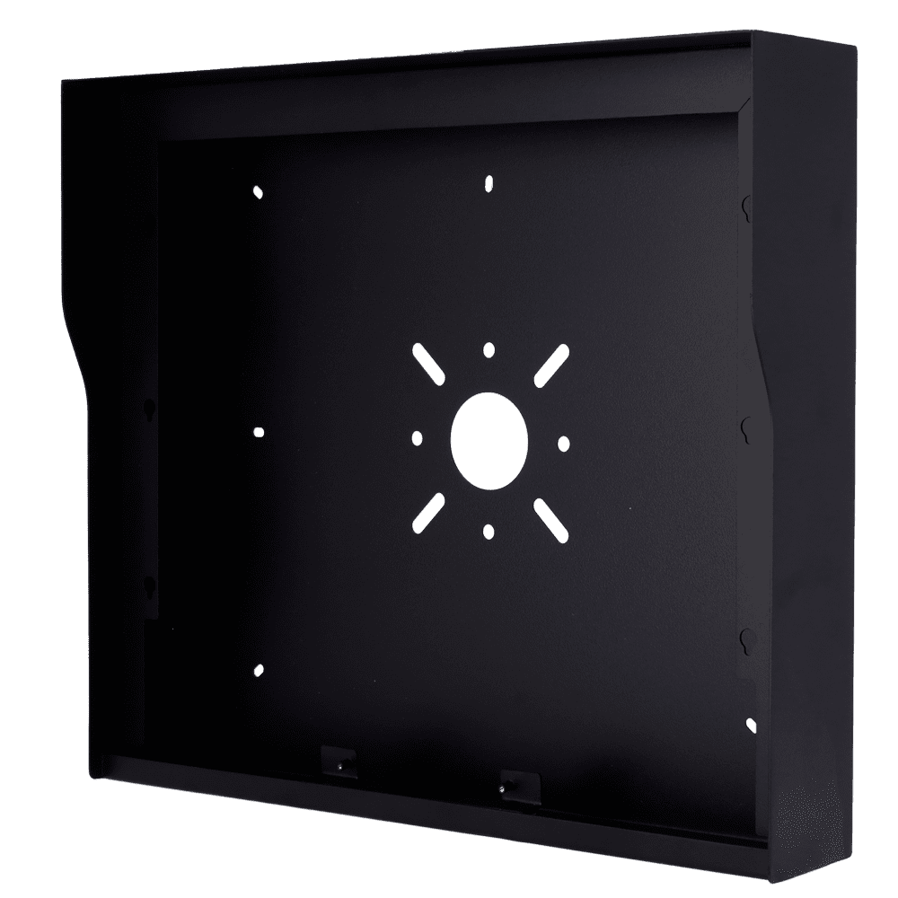 Suporte para videoporteiro com viseira – Específico para Akuvox AK-X916S-L – Medidas: 347 (Al) x 390 (Lg) x 89 (Fd) mm – Fabricado em aço galvanizado – Montagem na superfície – Fácil instalação