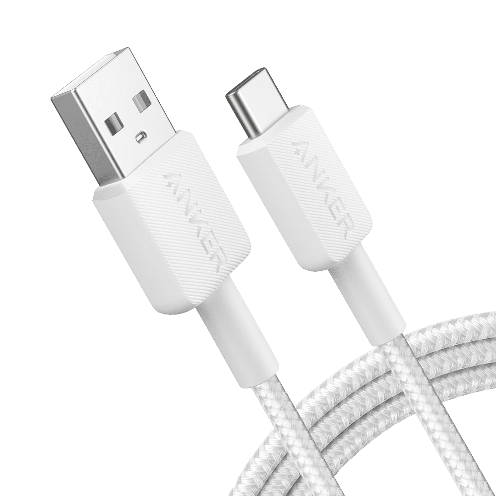 Anker – Cabo USB2.0 – USB-A para USB-C – Cabo trançado de nylon – Comprimento 1.8m – Carregamento rápido até 15W | Cor branca