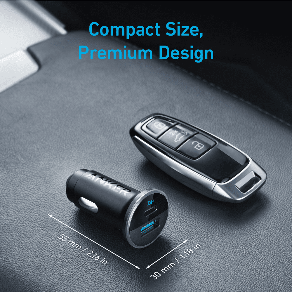 Anker – Isqueiro do carro – Potencia 52.5W – Carregamento rápido 30W | Tecnologia PowerIQ 3.0 – Saídas USB-C, USB-A – Cor preto