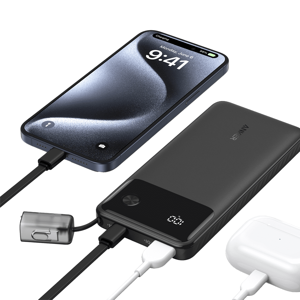 Anker Power bank com ecrã – Capacidade 10000mAh – Entradas USB-C – Saídas USB-A, 2x USB-C – Carregar dispositivos 3 de cada vez – Carregamento rápido PD22.5W