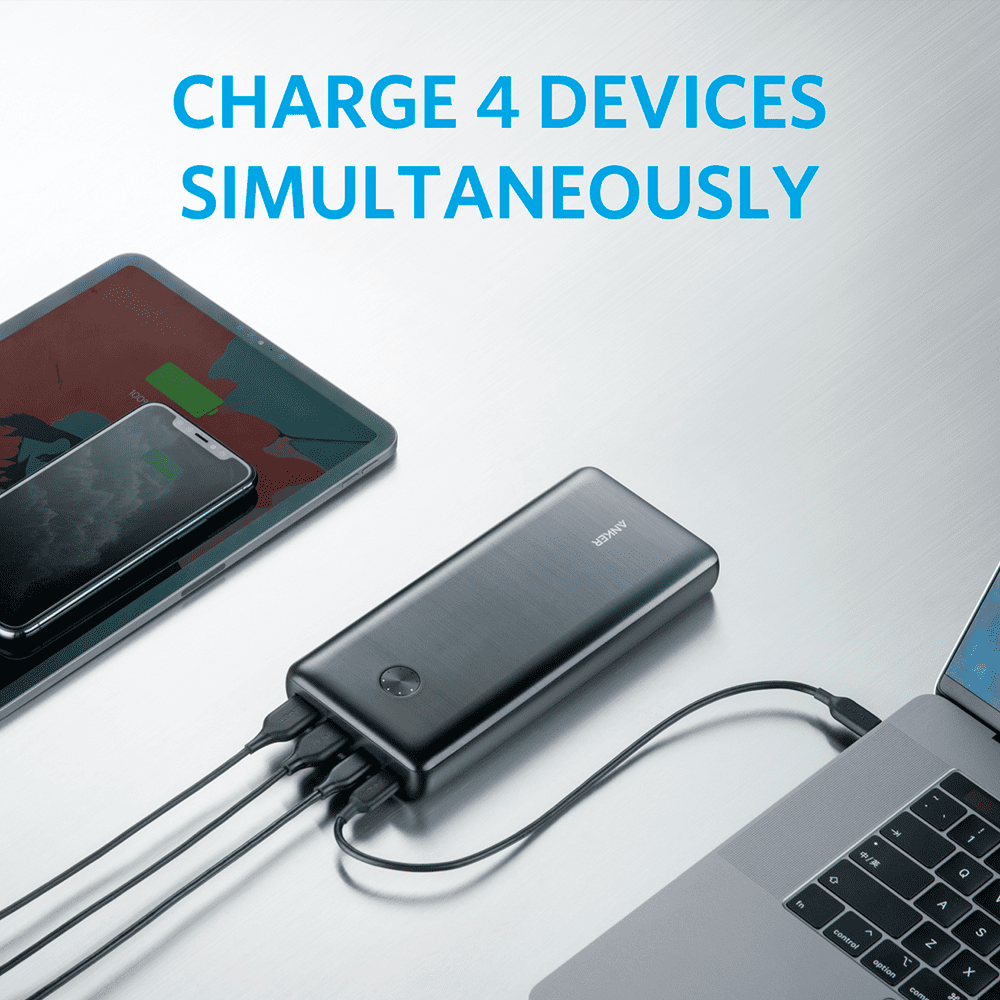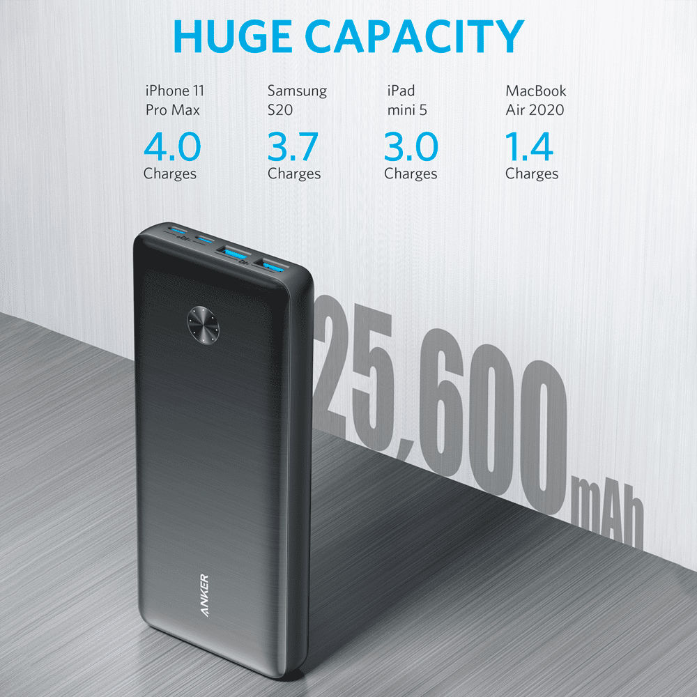 Anker Power bank com LEDs de carregamento – Capacidade 25600mAh – Entrada USB-C – Saídas 2x USB-C, 2x USB-A – Carregar dispositivos 4 de cada vez – Carregamento rápido PD87W | Para computadores portáteis