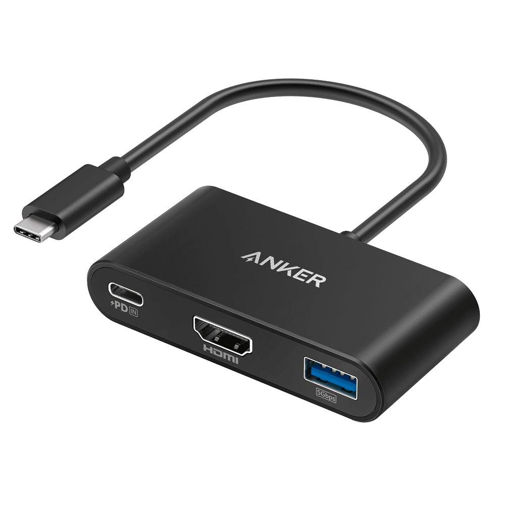 Anker – Hub USB-C 3 em 1 – Suporta o carregamento de PD100W – Transferência de dados de 5Gbps – Admite resolução 4K@30Hz – 1xUSB-C,1x USB-A, 1xHDMI
