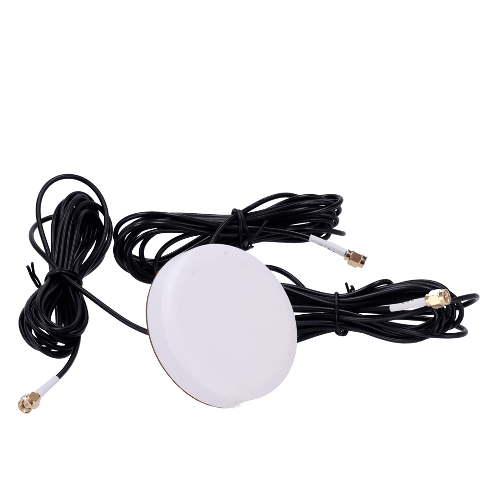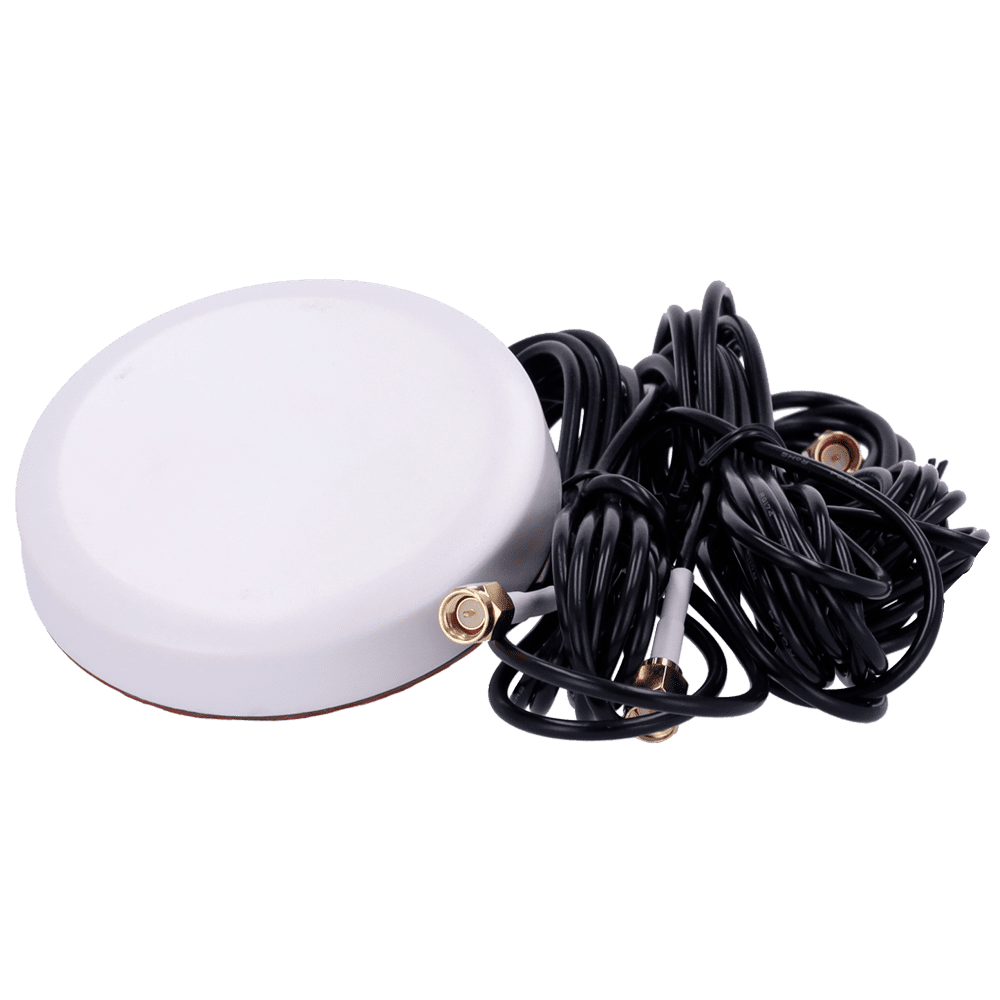 Antena branca 4G com GPS e Wi-Fi – Frequência 4G 824-2700MHz – Conector SMA Macho – Fixação no teto do veículo – Ganho 4G 3dBi / Wi-Fi 3dBi / GPS 25dBi – Cabo RG174 3 metros de comprimento