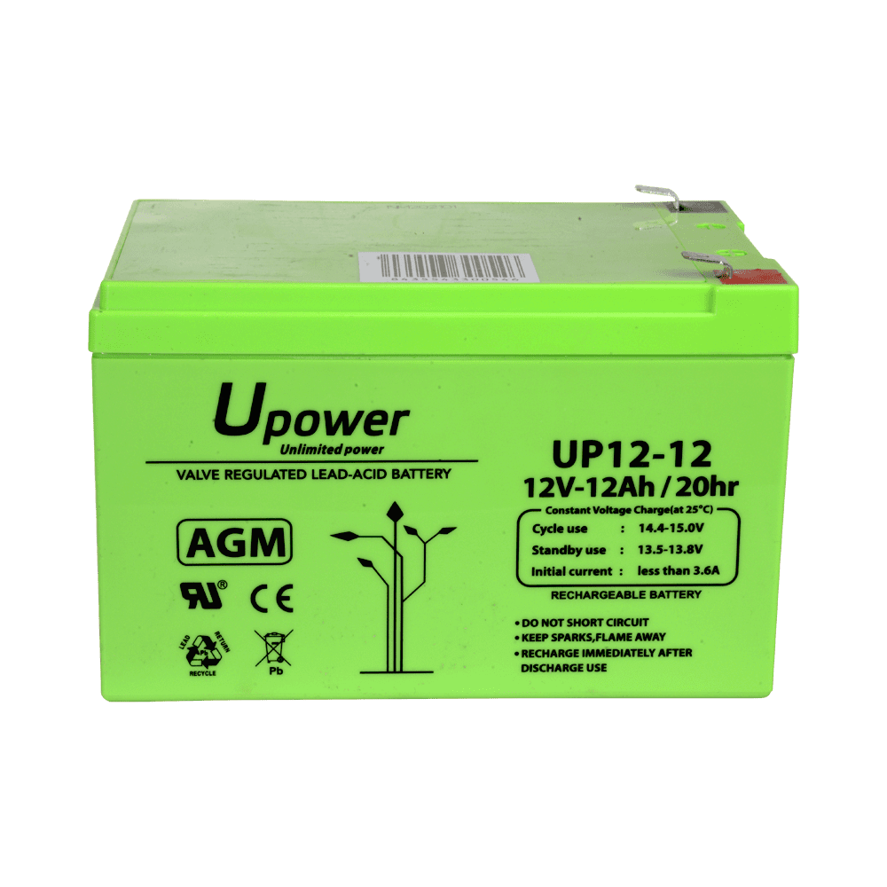 Upower – Bateria recarregável – Tecnología chumbo ácido AGM – Tensão 12 V – Capacidade 12.0 Ah – 101 x 151 x 98 / 3800 g – Para backup ou utilização directa