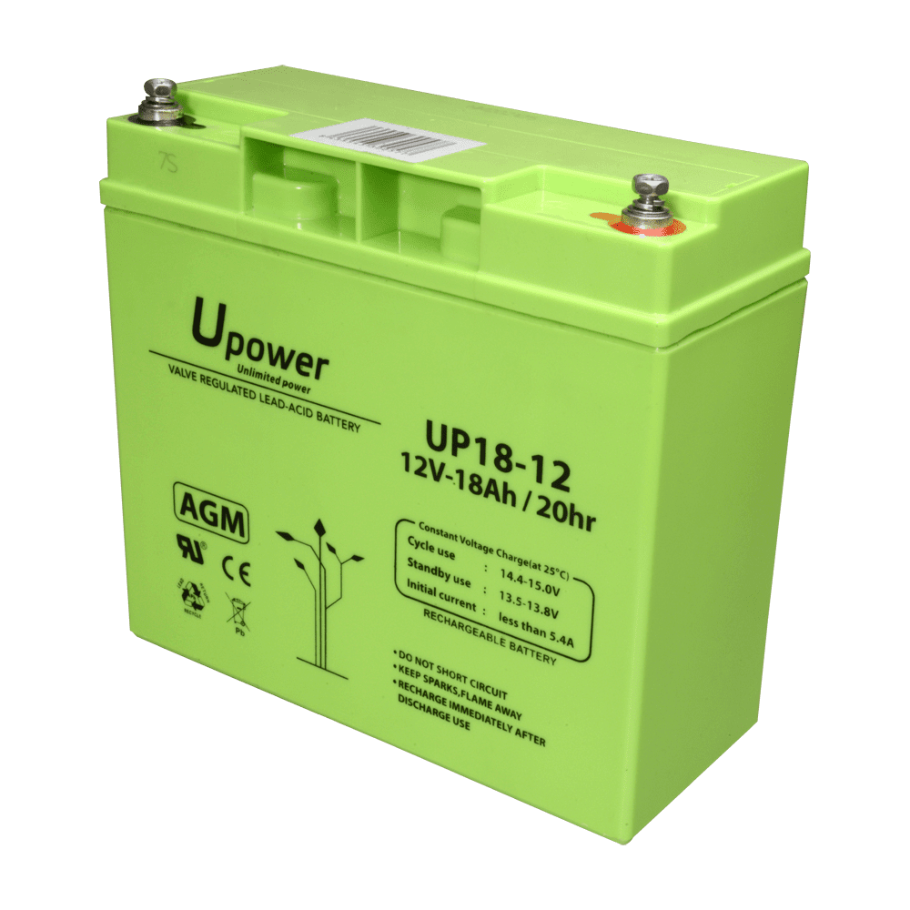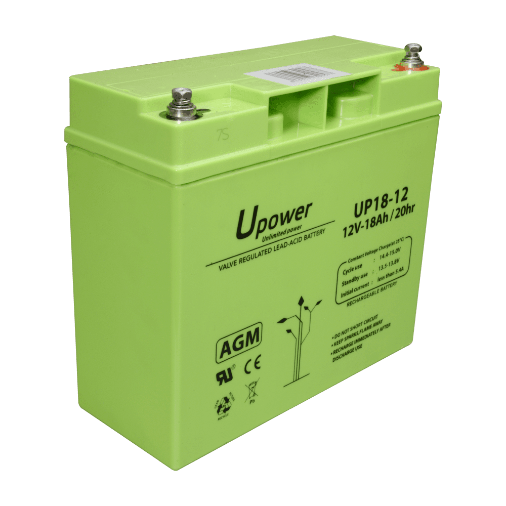 Upower – Bateria recarregável – Tecnología chumbo ácido AGM – Tensão 12 V – Capacidade 18.0 Ah – 167.5 x 181.5 x 77 / 5700 g – Para backup ou utilização directa