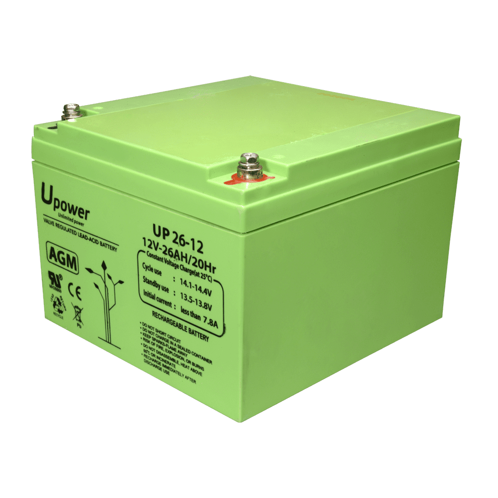 Upower – Bateria recarregável – Tecnología chumbo ácido AGM – Tensão 12 V – Capacidade 26.0 Ah – 125 x 166.5 x 175 / 8440 g – Para backup ou utilização directa