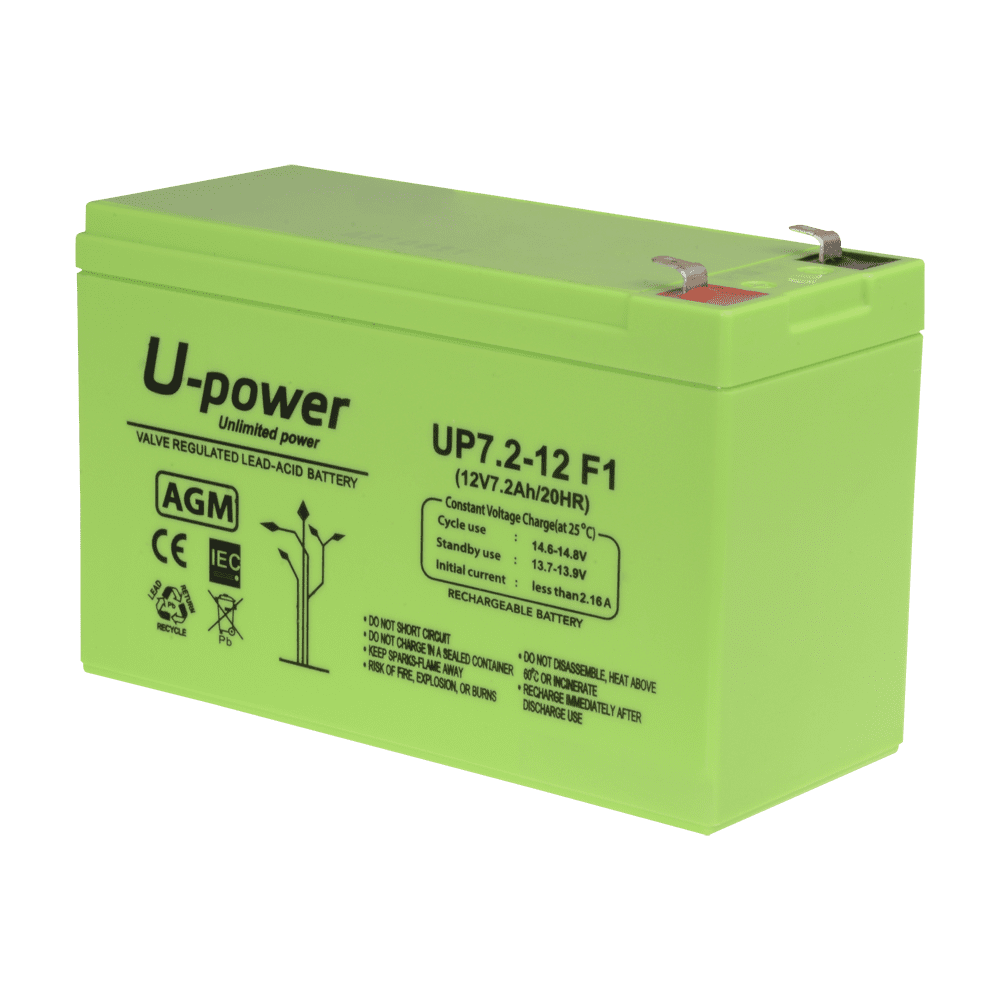 Upower – Bateria recarregável – Tecnología chumbo ácido AGM – Tensão 12 V – Capacidade 7.2 Ah – 101 x 151 x 65 mm / 2180 g – Para backup ou utilização directa