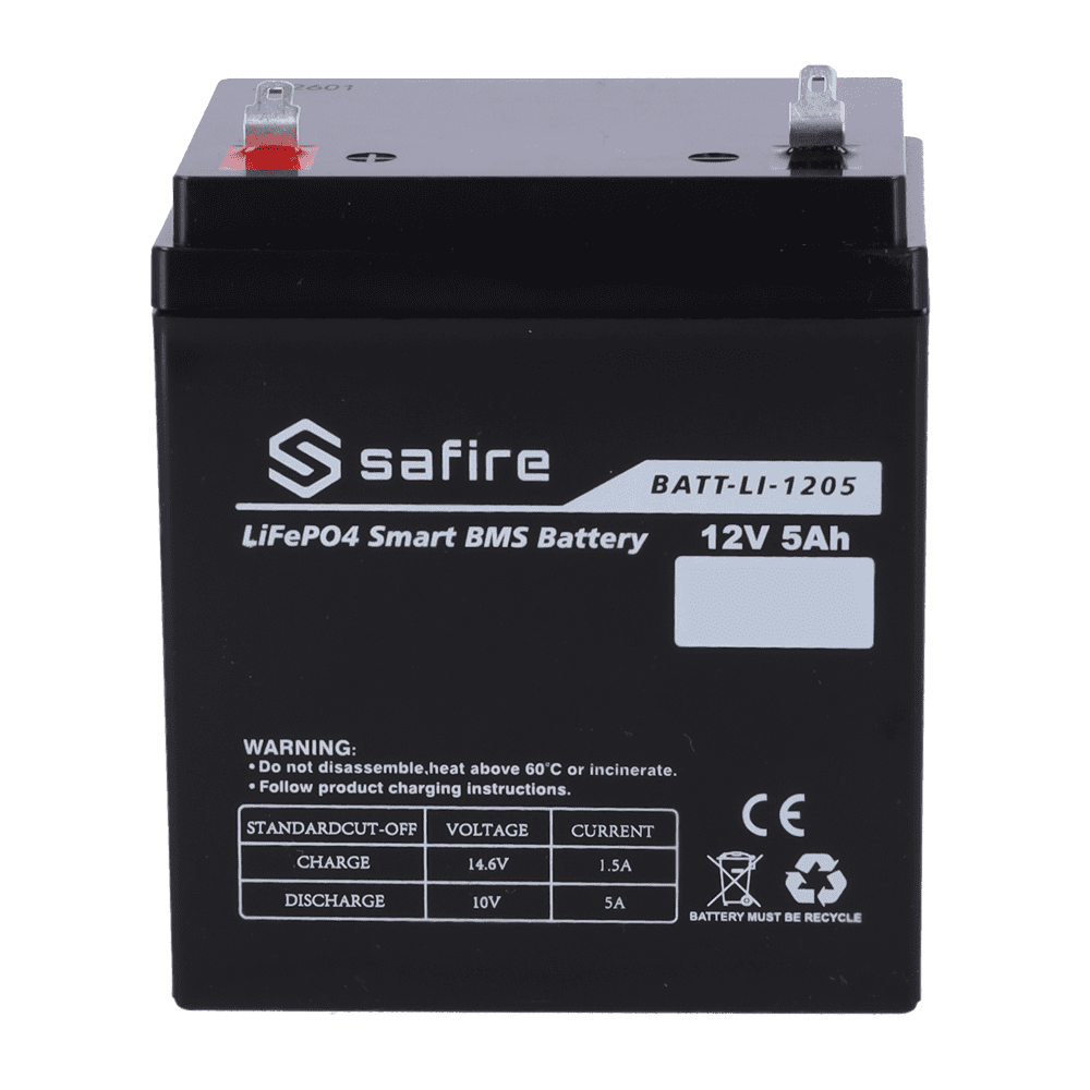 Bateria recarregável – Lítio LiFePO4 – Tensão 12V – Capacidade 5Ah – 3000 ciclos – 90 (largura) x 101 (Altura) x 70 (Fundo) mm / 0.7Kg