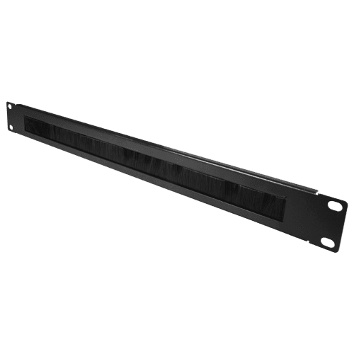 Painel de escova – Medida máxima 1U – Apto para rack – Robusto e resistente – Cor preto – Fabrico de metal