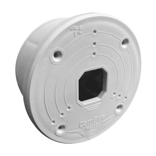 Caixa de conexões – Para câmaras dome – Apto para uso exterior – Instalação em tecto ou parede – Fabricada em plástico – Cor branco