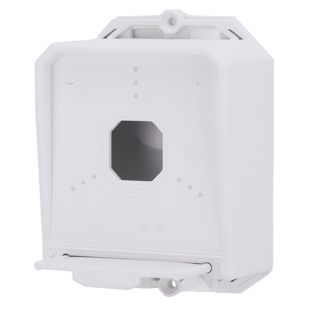Caixa de conexões – Para câmaras dome – Apto para uso exterior – Fabricada em plástico – Cor branco – 140 (Al) x 100 (Lg) x 59 (Fd) mm