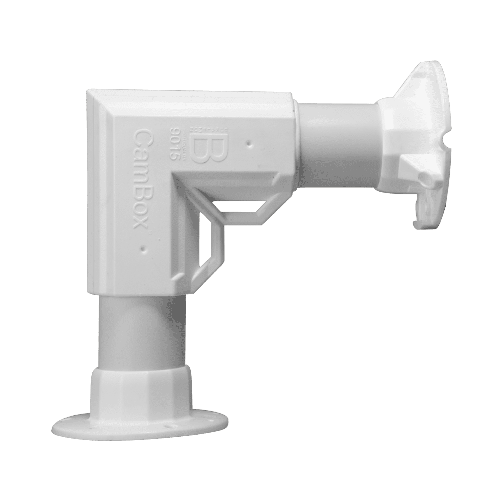 Suporte de parede inclinado – Apto para uso exterior – Compatível com todos os produtos CamBox – Fabricado em plástico – 15 x 15 cm