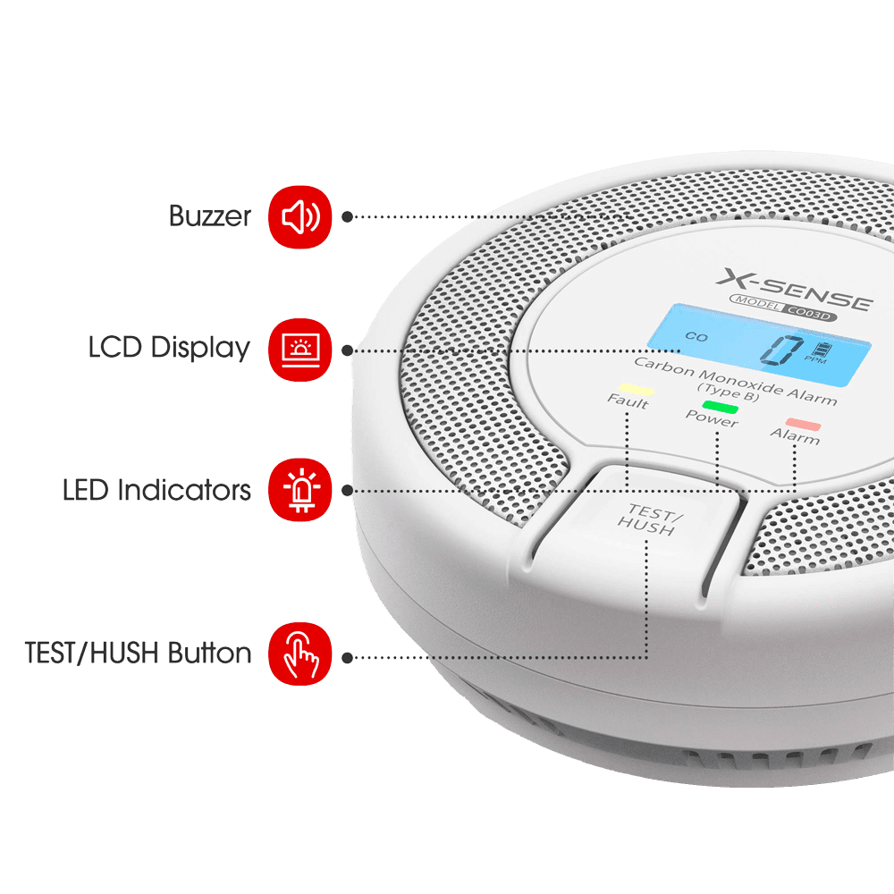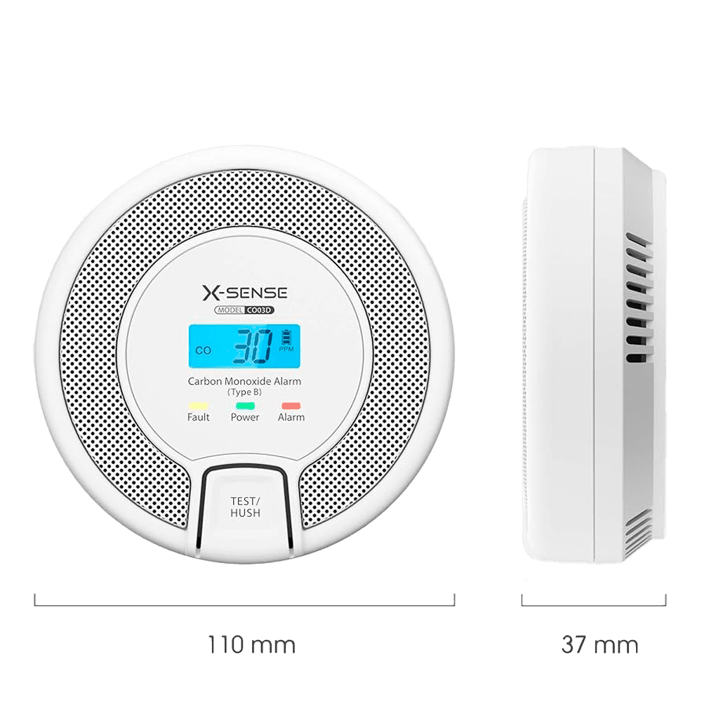 Detector de CO autónomo X-Sense – Bateria substituível – Luz indicadora de alarme – Alarme sonoro 85 dB a 3m – Botão de teste e ecrã LCD – Certificado EN 50291