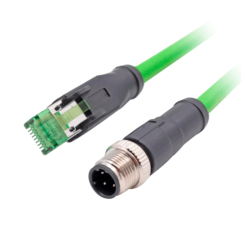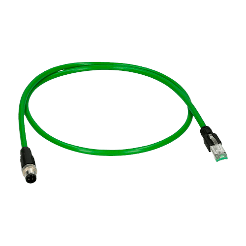 Conector adaptador M12 macho a RJ45 macho – Ethernet – Especial para aviação – Comprimento 0.1 m
