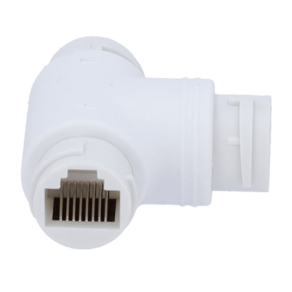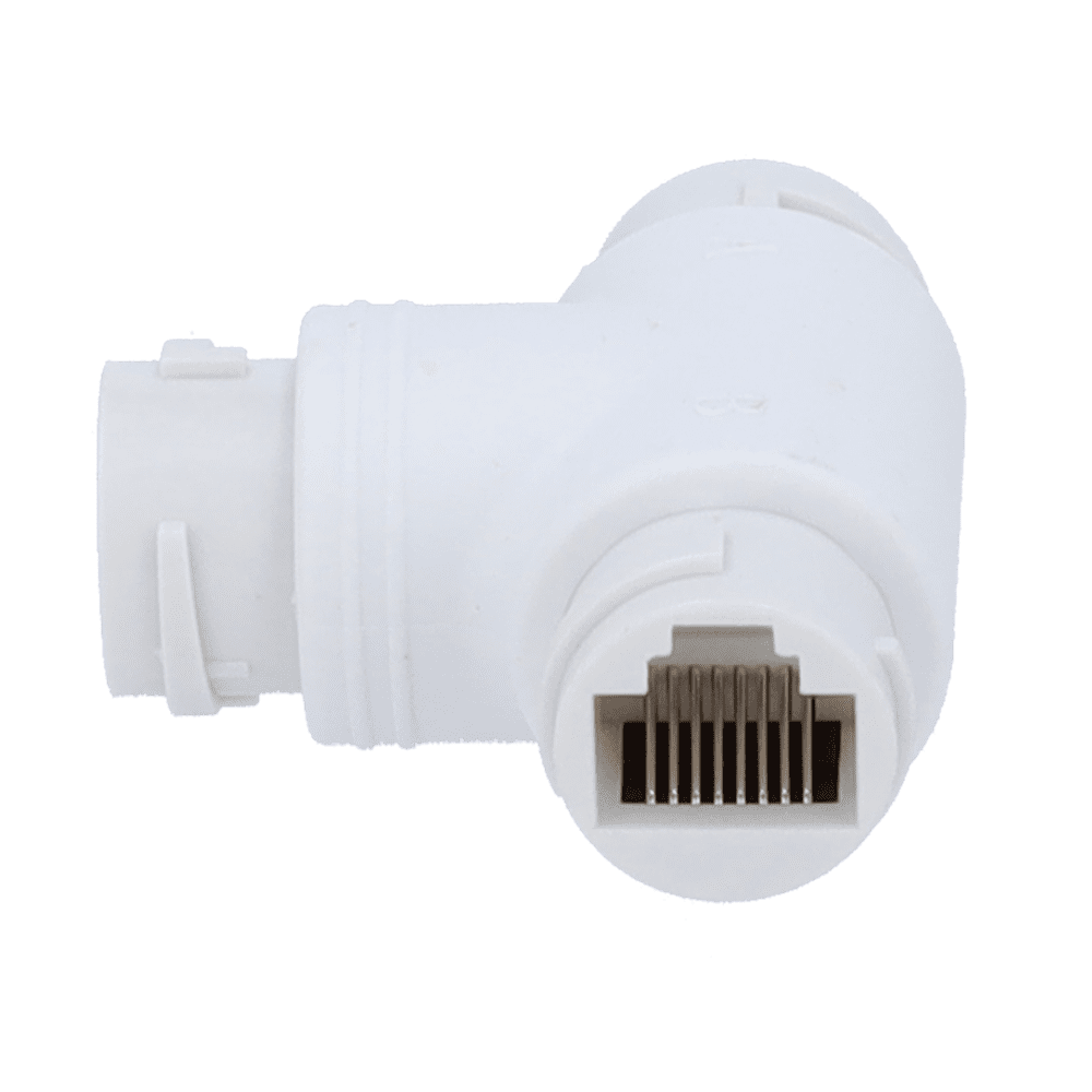 Adaptador RJ45 – Conector de entrada RJ45 fêmea – Conector de saída 2 RJ45 fêmea – Compatível com UTP – IP66 – Cor branco