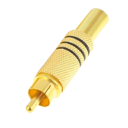 Conector – RCA macho para soldar – Cabo paralelo áudio – Para cabos de Ø 6mm – Revestimento anticorrosivo – 10g
