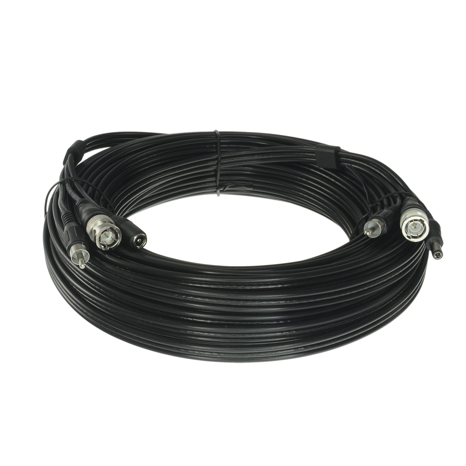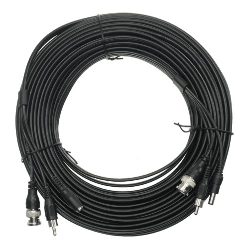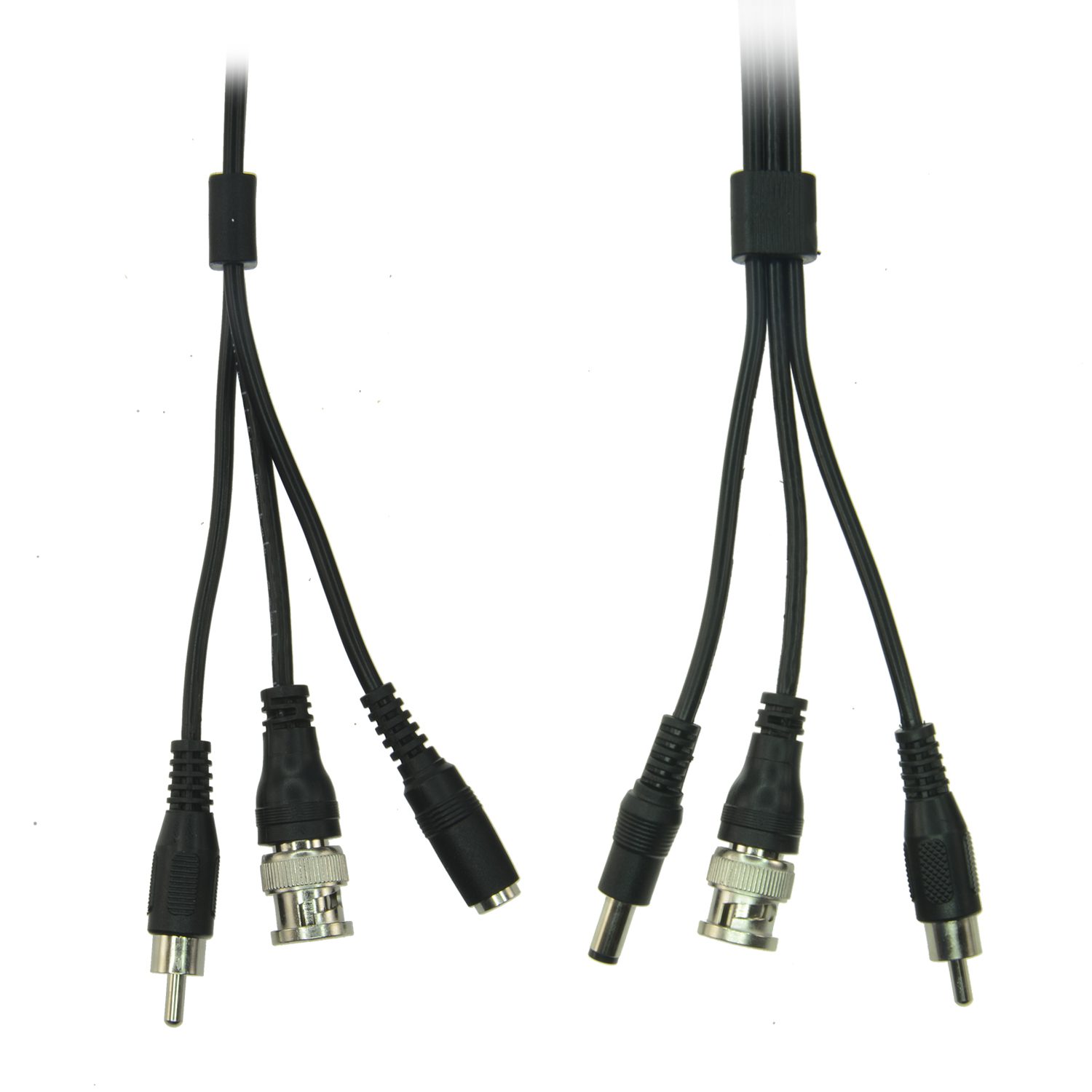 Cabo combinado RG59 + Audio + DC – Mini RG59 com conector BNC – Cabo de Áudio via RCA – Cabo de alimentação via Jack – Comprimento 20 m – Mínima perda