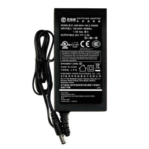 Alimentador electrónico – 24 V / 2500 mA – Reduzidas dimensões – 110 (Al) x 55 (Lg) x 30 (Fd) mm – 220 g – Estabilizado