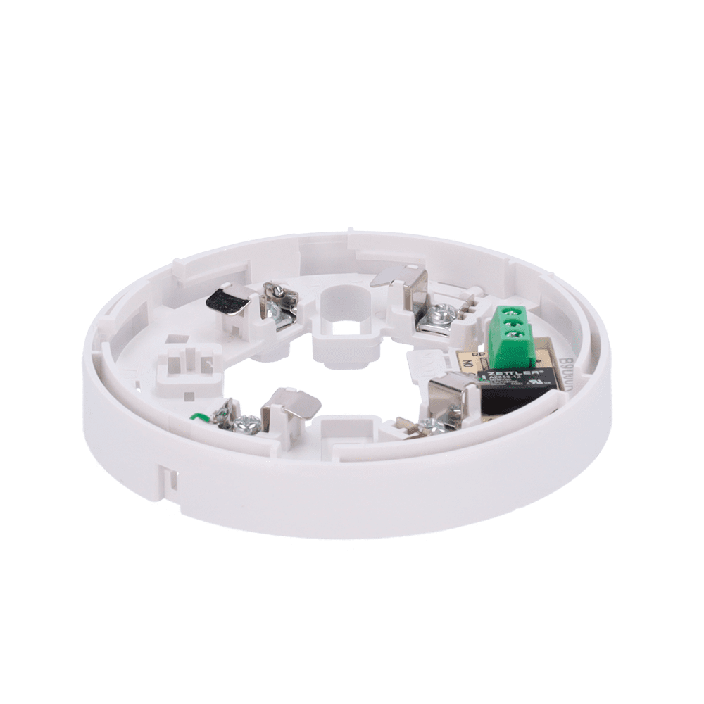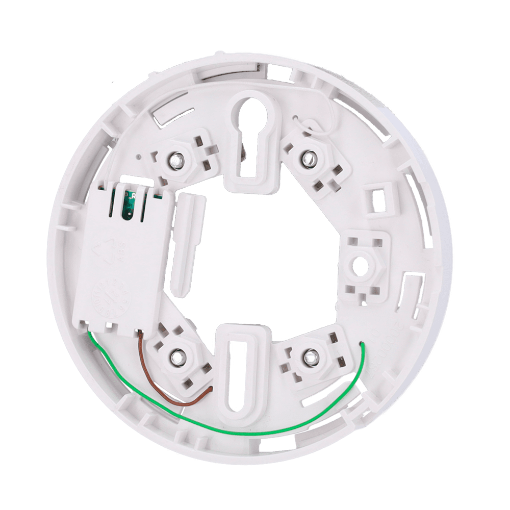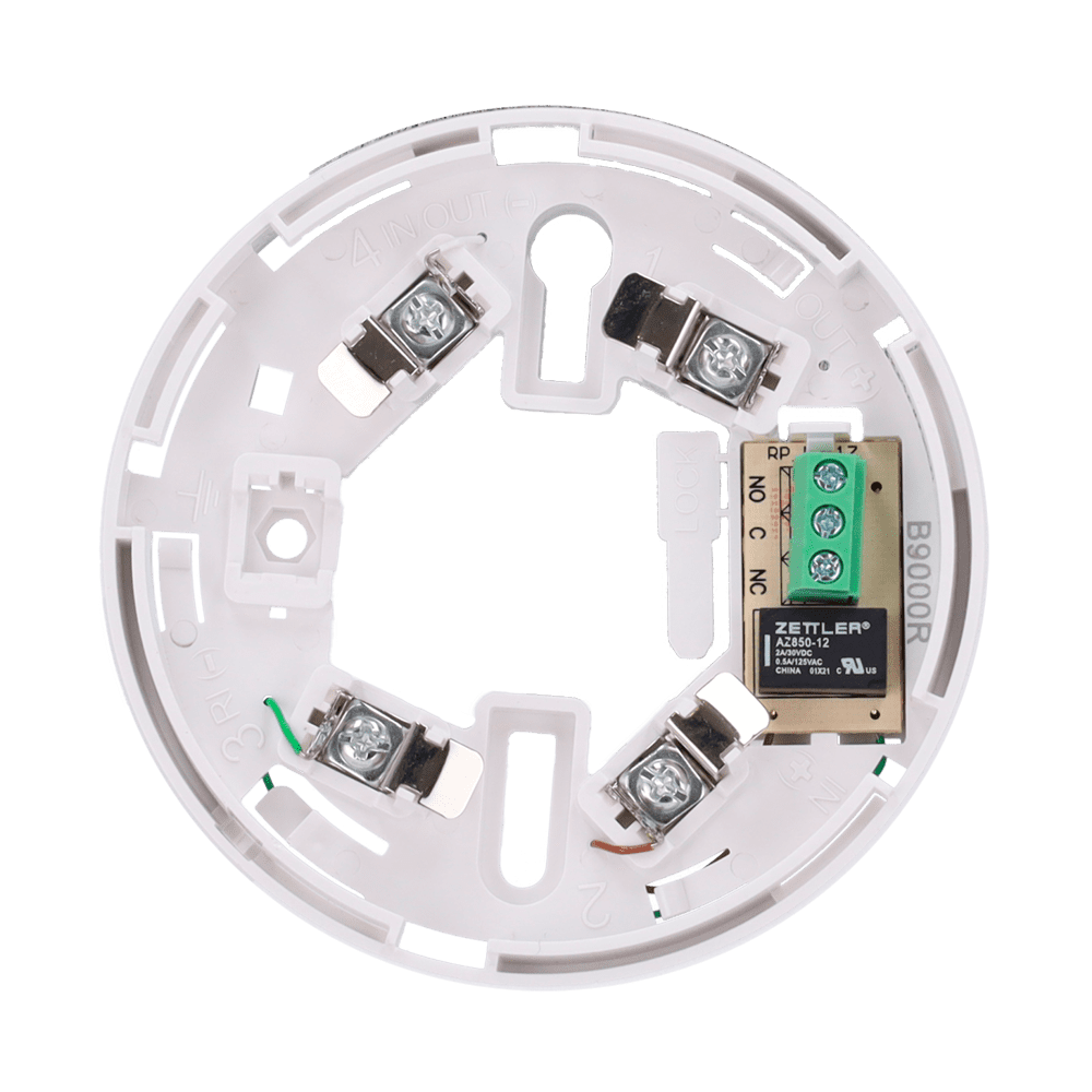 Base de baixo perfil com relé – Até 12VDC 0.5A / Terminal NO/NC/C – Compatível com V2 e detetores de base alta – Necessário para instalação de detector – Marca de montagem fácil – Possibilidade de bloquear o detector até à base – Compatível com piloto indicador de ação