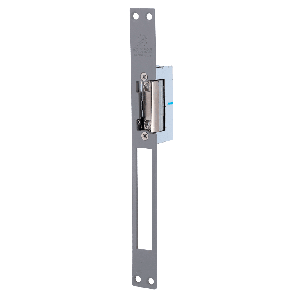 Sistema de abertura de portas eléctrico Dorcas – Para porta única : trinco regulável – Modo abertura Fail Secure (NO) – Força de retenção 330 kg – Fonte de alimentação CA/CC 8-12V – Trinco e passagem livre