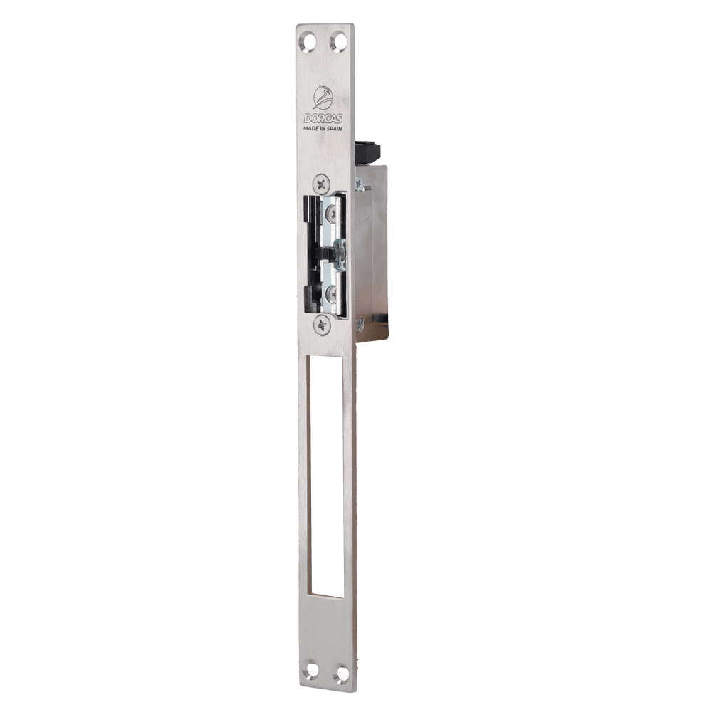 Sistema de abertura de portas eléctrico Dorcas – Para porta única : Parafuso radial ajustável – Modo de abertura Fail Secure (NO) | Sinal da porta – Força de retenção 330 kg – Alimentação DC 12V – Instalação sem corte