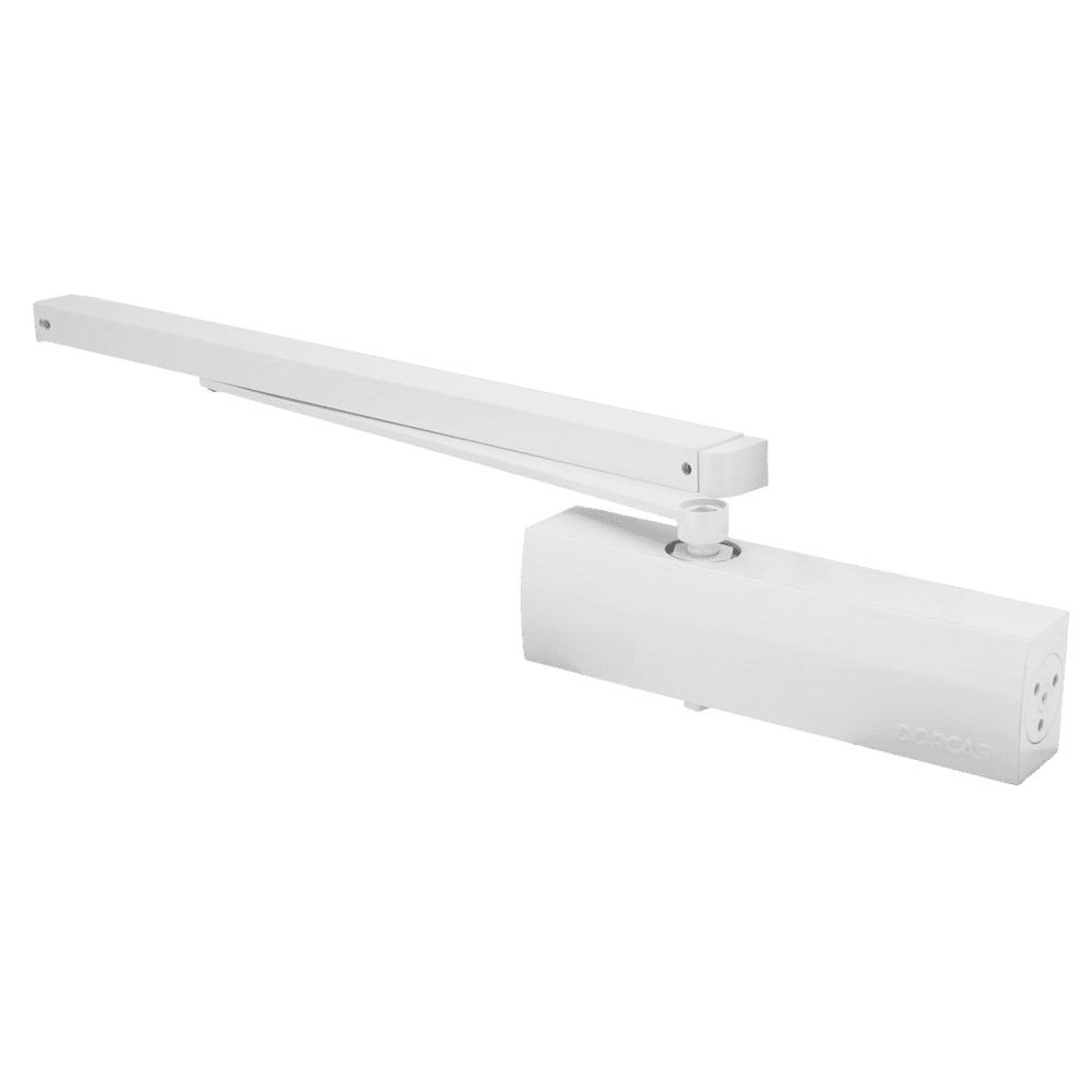 Mola de braço deslizante para portas – Montagem à superfície e instalação reversível – Abertura com força reduzida – Portas entre 25~100 kg e 850~1250 mm – Velocidade ajustável | Ajuste preciso da força – Apto para todos os tipos de portas